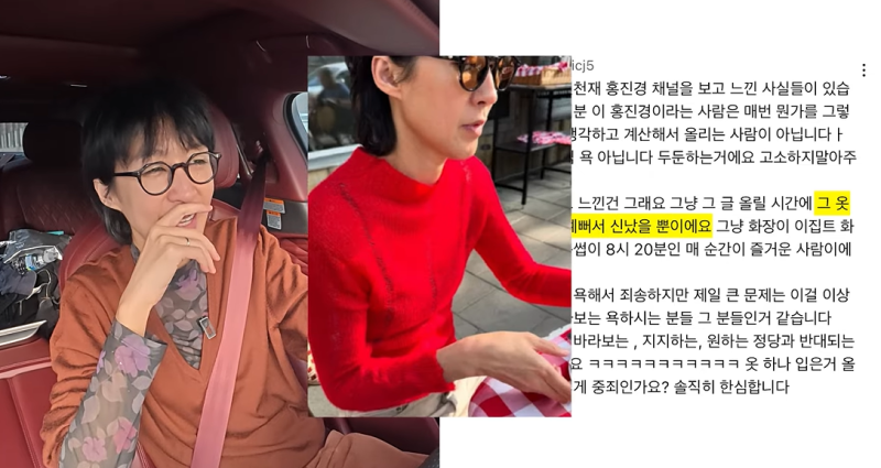사진=유튜브채널‘공부왕찐천재홍진경’방송인홍진경이대통령선거기간불거진옷색깔논란이후반응을직접마주했다.16일유튜브채널‘공부왕찐천재홍진경’에는‘4개월잠적후‘화려한싱글’로돌아온홍진경의역대급근황’이라는제목의영상이게시됐다.영상에서홍진경은구독자들이달아준댓글사연을읽으며소통을가졌다.공부콘텐츠를진행해온그를향한“공부는대체언제하냐”는댓글엔“수학공부사실때려쳤다.중3검정고시를끝으로마무리지었다”며“고등학교수학은안하기로했다.사람공부나비즈니스공부등다양한공부를시작해보려고한다.국영수만이공부가아니라는걸알아주셨으면한다”고말했다.‘빨간옷’을입어해명했던영상에달린댓글도읽었다.제작진이“욕인지칭찬인지모르겠다”며읽은댓글속한구독자는“홍진경이라는사람은매번뭔가를그렇게깊게생각하고계산해서올리는사람이아니다”라고장문의글을적었다.이어해당구독자는“그글올릴시간에그옷이너무예뻐서신났을뿐이다.화장이이집트화장이고눈썹이8시20분인매순간이즐거운사람”이라고두둔했다.이를들은홍진경은별다른말을덧붙이지않았지만너털웃음을터뜨렸다.지난6월홍진경은대선전날자신의SNS에빨간색옷을올린사진을게시하며뭇매를맞았다.이에그는“투표기간에오해를받을만한행동을하는연예인들을보며참안타깝다는생각을한적이많았는데이민감한시기에제가이렇게어리석은잘못을저지르다니저스스로도진심으로어처구니가없다”며자필사과문을게시했다.이주인기자[email protected]©일간스포츠.무단전재및재배포금지.