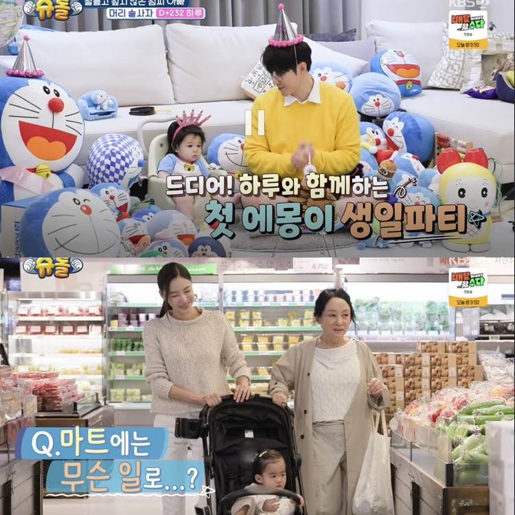 사진=KBS2예능‘슈퍼맨이돌아왔다’방송캡처.배우김윤지와심형탁이‘슈퍼맨이돌아왔다’를통해각각색다른가족의하루를공개했다.15일방송된KBS2예능‘슈퍼맨이돌아왔다’(이하‘슈돌’)에서는김윤지가족의‘한지붕네가족’추석이야기와심형탁부자의‘에몽이생일파티’가그려졌다.사진=KBS2예능‘슈퍼맨이돌아왔다’방송캡처.이날김윤지는시어머니이자국악인김영임,딸엘라와함께명절장보기에나섰다.그는“작년추석에는출산회복중이라함께하지못했다”며“올해는전도같이부치고대가족의명절풍경을엘라에게보여주고싶었다”고말했다.하지만곧“엘리베이터만타면다가족이있어서사실상매일이명절같다”며웃음을자아냈다.김윤지가족은서울삼성동의한아파트에각세대가층별로거주한다.시부모는9층,시누이가족은10층,김윤지부부는3층,친정어머니는1층에살아‘한지붕네가족’구조를이루고있다.이날방송에서시어머니김영임은잡채60인분,녹두전300장을준비하며‘삼성동큰손’다운스케일을자랑했다.사진=KBS2예능‘슈퍼맨이돌아왔다’방송캡처.한편심형탁은아들하루와함께‘에몽이’생일을맞아덕후본능을폭발시켰다.그는거실가득인형을꺼내며“결혼전부터있던것들인데다시다가져왔다”고설명했다.이어“오늘은‘에몽이’생일이다.2112년9월3일인데앞의2를빼면129.3,그게에몽이키다”라며세세한설정을전했다.심형탁은“에몽이는내인생을바꾼존재다.이름을알리게해줬고,아내사야를만나게해줬다.에몽이가없었으면결혼도,하루도없었을것”이라고고백했다.이후하루와장난감가게를찾아새피아노를구입하고,함께‘에몽이’생일케이크를꺼내축하노래를부르며훈훈한부자케미를보여줬다.김지혜기자[email protected]©일간스포츠.무단전재및재배포금지.
