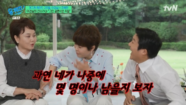tvN‘유퀴즈온더블럭’캡처tvN‘유퀴즈온더블럭’캡처[뉴스엔서유나기자]방송인이경실이화려한결혼식을올린방송인조세호에게독설했다.10월15일방송된tvN예능'유퀴즈온더블럭'(이하'유퀴즈')314회에는이경실,조혜련이게스트로출연했다.이날이경실은조세호가"조혜런선배님이저랑성향이비슷한것같다.저도가만히안있고뭐라도해보고누구라도만나고한다"고하자"그래서그렇게사람을많이만나냐"고묻더니"난그렇게사람많은결혼식처음봤다.사람이그렇게많이필요하진않다살면서"라고일침했다.조혜련은"결혼식에사람이안오는것보다낫지않냐"며감싸줬지만이경실은"근데너무많더라"며"단체사진을찍는데다섯파트가있더라.개그맨파트,가수파트,탤런트파트,기업인파트,제작진파트.난살다살다그런결혼식은처음봤다"고말했다.이어"과연네가나중에몇명이나남을지보자"라고독설아닌독설을해조혜련을당황시켰다.조혜련이"왜이래언니,좋은데와서"라며말리고편집을요구하는가운데이경실은유재석을붙잡고"내가살아보니까그렇더라이거다"라고속뜻을전하고해명했다.한편조세호는지난해10월20일9세연하의정수지씨와서울중구신라호텔에서결혼식을올렸다.결혼식에는연예계마당발답게유재석,GD,이유비,이승기이다인부부,최태준박신혜부부,태양민효린부부,안재욱,유연석,송승헌,최지우,산다라박등약900명의하객이참석한것으로전해졌다.뉴스엔서유나stranger77@기사제보및보도자료[email protected]ⓒ뉴스엔.무단전재&재배포금지Copyright©뉴스엔.무단전재및재배포금지.