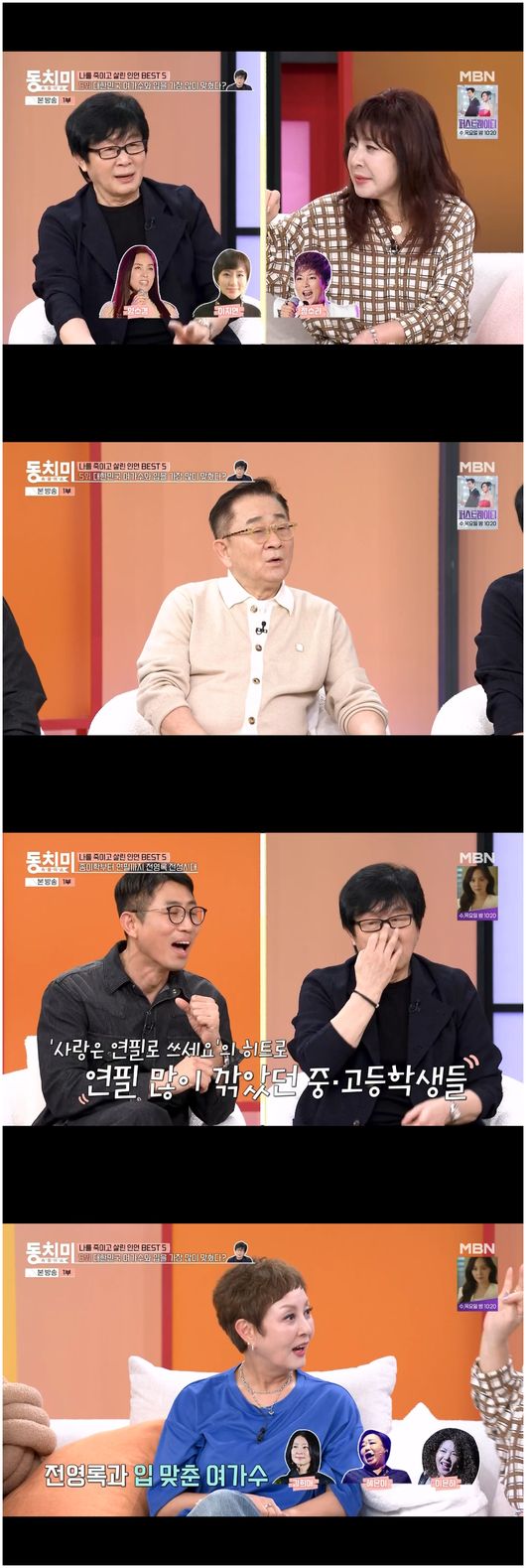<리뷰:방송시청후작성된리뷰기사입니다.>[OSEN=오세진기자]‘속풀이쇼동치미’가수이자작곡가전영록이엄청난인기로다양한여가수들과의듀엣을밝혔다.11일방영한MBN‘속풀이쇼동치미’(이하‘동치미’)에서는절친특집이이뤄졌다.이홍렬의절친전영록이등장했다.두사람은딱히말하지않아도서로를알았다.이현이는“전영록이여가수들이랑그렇게입을많이맞췄다는데”라고물었다.이홍렬은“그때인기스타니까영화도찍어서그랬나?"라고물었다.전영록은“70년대부터여가수들이랑듀엣을한다.그때‘입을맞춘다’라는소리를한다.그리고듀엣을할때상대가수의입모양을본다.호흡의길이나이런걸봐야해서입을많이보니까입을많이맞추는거다”라며관용적표현이라고해명했다.노사연은“김희애,혜은이,이은하,양수경,이지연,정수라,김혜림이랑입을맞추지않았냐”라며물었고전영록은“윤시내다.정말호흡을맞추면공부가많이된다.윤시내는강하게나오는걸아니까같이나와야한다”라면서설명했다./[email protected][사진출처]MBN‘속풀이쇼동치미’Copyright©OSEN.무단전재및재배포금지.