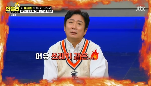 JTBC‘한블리(한문철의블랙박스리뷰)’캡처JTBC‘한블리(한문철의블랙박스리뷰)’캡처[뉴스엔서유나기자]방송인이수근이휴게소에쓰레기를투기하는빌런에분노했다.10월8일방송된JTBC시사교양프로그램'한블리(한문철의블랙박스리뷰)'(이하'한블리')146회에서는트로트계아이돌김희재와함께도로위빌런들을살펴봤다.이날한블랙박스영상에서는휴게소에서개인쓰레기를다량배출하는사람들의모습이공개됐다.분리배출장앞에차를세운한무리는차트렁크에서쓰레기를한가득꺼내모두휴게소의쓰레기통에투기했다.분리배출장엔분명히'외부쓰레기반입금지'라고적혀있었으나무리는이를무시했다.이수근은"이건걸렸을것.카메라에다찍힌다"고예상했다.실제로영상에선관리인이성큼성큼나타났고,현장에서딱걸린무리는일부쓰레기를다시차안에넣고아무일없다는듯쌩떠났다.이들이마처안챙긴쓰레기는관리인이정리해야만했다.이수근은"어유쓰레기같은인간들"이라며분노했다.한문철은"쓰레기를아무데나버리면쓰레기무단투기로처벌가능하다.그런데쓰레기통에버렸다.그래서처벌규정이없다"고말해출연자들을더욱분개하게했다.규현은"휴게소1년출입금지없나.전국휴게소금지시켜야한다"고말했다.뉴스엔서유나stranger77@기사제보및보도자료[email protected]ⓒ뉴스엔.무단전재&재배포금지Copyright©뉴스엔.무단전재및재배포금지.