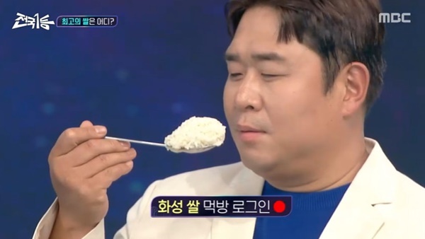 MBC‘전국1등’MBC‘전국1등’[뉴스엔유경상기자]전국1등쌀을찾기위해여주,안동,화성쌀이대결했다.문세윤이두숟갈에쌀밥두그릇을흡입하며역전드라마를썼다.10월8일방송된MBC‘전국1등’2회에서는최고의쌀을찾기위한경쟁이펼쳐졌다.박나래가여주대표,김대호가안동대표,문세윤이화성대표가돼최고의쌀경쟁을벌였다.박나래는“쌀알처럼작지만단단한미녀개그우먼”이라고자신을소개했고,문세윤은“법대로살기보다밥대로사는남자”라고소개했다.김대호는“현연예인”이라고소개해웃음을안겼다.김대호는“밥맛에제가예민하다.이번에안동쌀을먹어보고.아직난모자라구나.이런쌀의신세계가있구나”라며안동밥맛을어필했고,박나래는“할머니할아버지부터쌀농사를지었다.농부의손녀”라고자부심을보였다.문세윤은“일론머스크가밥먹으러화성간다고하는거못들었냐”고농담했고,박나래가“그화성이아니다”고꼬집었다.세사람의말다툼에이어공정한심사를도와줄100인의평가단과7인의미식단이소개됐다.7인의미식단은정영한,홍신애,미미미누,이원일,김태연,문정훈,파트리샤가함께했다.문정훈은“밥맛을결정하는게품종,지역의특성이다.화성,여주,안동은지역적특성을가지고있다.화성은골든퀸3호향미라고한다.향이나는쌀이다.팝콘,누룽지향이난다.여주는임금님에게올리는쌀이다.진상미.맑고찰기가좋은쌀이다.안동은백진주다.이름처럼쌀이동글동글하고하얗다.찹쌀에가까울정도로찰기가재배하는쌀중에서가장높은편”이라고쌀을소개했다.100인의평가단의사전투표결과는1등여주,2등화성,3등안동이었다.박나래는“사전투표결과가압도적이라죄송하다”며설레발을쳤다.이어세지역쌀로만든백설기를모두가함께맛을봤고,홍신애는여주쌀로만든백설기를먹고“백설기의정석이라고말하고싶다”고감탄했다.미미미누는화성쌀로만든백설기를먹고“만성비염을앓았다.떡때문에이비인후과를갈필요가없을것같다.구수한누룽지향이후각상피세포를감싼다.뚫려버렸다”고농담했다.김태연은안동쌀로만든백설기를먹고“살면서처음먹는식감이다.얼마나쫄깃쫄깃한지모르겠다”고감탄했다.뒤이어김대호가직접안동으로,박나래가여주로,문세윤대신미미미누가화성으로향해농민들을만났다.특히박나래는정영한아나운서와‘나는쌀로’연애예능분위기를조성해눈길을끌었다.미미미누는화성에서MZ농부들을만나난생처음보는햄버거새참에놀랐다.화성에직접가지못한문세윤은‘한입만’으로쌀밥두그릇을두숟갈에먹어감탄을자아냈다.세팀이쌀밥먹방까지펼친결과100인의평가단중간투표순위가1위안동,2위화성,3위여주로바뀌었다.최종투표는밥전문가인밥소믈리에들이직접한밥을모두가시식후에블라인드테스트로이뤄졌다.세가지밥이모두맛있어취향차이라는말이나오는가운데최종1등은화성으로역전드라마가완성됐다.한편‘전국1등’은대한민국특산물전국1등을차지하기위해경쟁하는특산물챔피언스리그,2부작파일럿프로그램이다.(사진=MBC‘전국1등’)뉴스엔유경상yooks@기사제보및보도자료[email protected]ⓒ뉴스엔.무단전재&재배포금지Copyright©뉴스엔.무단전재및재배포금지.