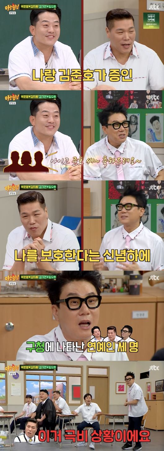 <방송시청후작성된리뷰기사입니다.>[OSEN=임혜영기자]이상민이혼인신고비화를공개했다.4일방송된JTBC‘아는형님’에는김가연-임요환,박준형-김지혜가출연했다.김희철은“이번에이상민이혼인신고할때서장훈이가줬다”라고말했다.이에서장훈은“나랑김준호가갔다”라고설명했다.이를듣던이수근은“증인두명이결격사유가있다”라며이혼경험이있는서장훈,김준호를은근히돌려말해웃음을자아냈다.이상민은“내가혼인신고를하러갔는데김준호가하러온줄알고김준호한테‘준호씨축하드려요’하더라.나는내가아닌걸로갔다"라고당시를회상했다.이어"장훈이가나를보호한다는신념이있었다.연예인세명이나타났으니얼마나많은사람이사진찍고싶겠냐.장훈이가(손으로막으면서)‘이거극비상황이다’라며사진찍는걸막아줬다”라며고마운마음을전했다.서장훈은“기사가나기전이었다.너무가까이서찍고보시니까”라고해명했다./[email protected][사진]JTBC‘아는형님’Copyright©OSEN.무단전재및재배포금지.