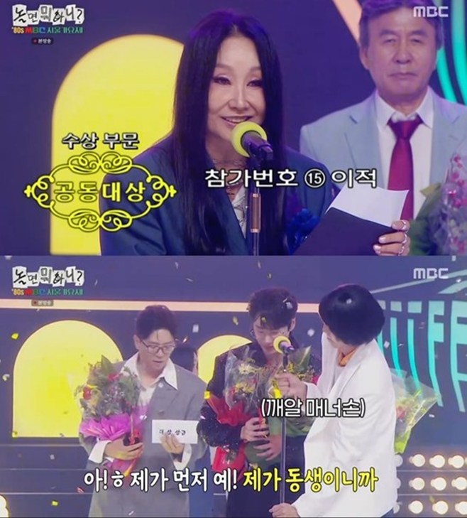 티브이데일리포토[티브이데일리이기은기자]'놀뭐'가연'80sMBC서울가요제,대상이공개됐다.4일방송된MBC'놀면뭐하니?'(이하'놀뭐')에서는'80sMBC서울가요제2부경연이공개되며수상자들도공개됐다.다양한참가자중우정상은박영규였다.박영규는유년기시골콩쿠르에서받은몇개의상을제외하고,60년만처음으로콩쿠르가요제에서상을받았다며감사를전했다.시청자들이직접뽑은인기상은아무래도팬덤이두터운아이돌출신이준영이었다.이준영은"인기상너무감사드린다.엄마,아빠나인기많다"고외쳤다.이어동상은하동균,은상을랄랄,이용진으로드러났다.금상은잔나비최정훈이차지했다.그는"80년대는제가제일좋아하는시대다.오늘이자리에서노래할수있는것만으로너무큰영광이었는데이런상을주셔서너무감사하다"고전했다.대상은한영애가발표했다.공동대상은이적과이준영이었다.동점의결과였다.이준영은"저에게80년대바이브를알려주시고선물해주신아버지너무감사드린다.처음'널그리며'를결정했을때걱정이많았다.박남정선배님이무대를너무잘해놓으셔서열심히해야겠다라는생각으로임했다"는심경을전했다.마지막으로이적은"이가요제에초대해주셨을때상상도못했던결과다.사실제가준영씨한테인기상이랑대상다받을것같다고했다.그예언은맞았는데제가받을건상상을못했다"라는겸양을드러냈다.그는"좋은아티스트들과함께해행복한시간이었다"고토로했다.[티브이데일리이기은기자[email protected]][Copyrightⓒ*세계속에新한류를*연예전문온라인미디어티브이데일리(www.tvdaily.co.kr)/무단전재및재배포금지]Copyright©티브이데일리.무단전재및재배포금지.