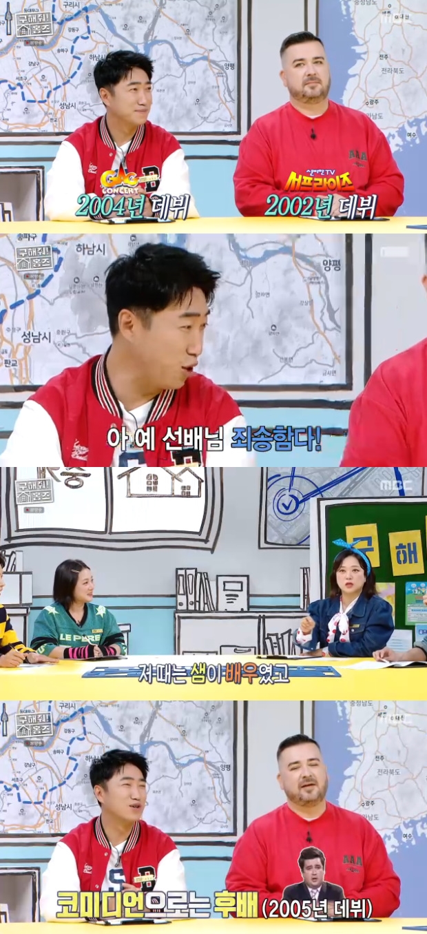 티브이데일리포토[티브이데일리김진석기자]코미디언장동민이방송인샘해밍턴에게사과했다.2일방송된MBC예능프로그램'구해줘!홈즈'는캠퍼스임장특집3탄연세대와고려대,고려대와연세대의임장대결이펼쳐졌다.이날샘해밍턴은자식농사대박이란극찬을들은뒤"윌리엄벤틀리키우고있는샘해밍턴이다"라며자신을소개했다.김숙은"최근샘이연희동의3층주택으로이사했다고들었다"라고축하했고,샘은첫째윌리엄과둘째벤틀리를위해단독주택으로이사했다고밝혔다.단독주택으로이사한샘해밍턴은"애들일어나면뛰어라고하니까마음이너무편하다"라고털어놨다.게다가샘해밍턴은외국인1호개그맨으로'개그콘서트'로데뷔했으며,그보다앞서'서프라이즈'1회출연자로얼굴을알리기도했다.샘해밍턴이2002년데뷔라는말에주우재는"장동민이2004년데뷔니까샘해밍턴이선배다"라했고장동민은"예선배님죄송합니다"이라며건성으로고개를숙여웃음을전했다.[티브이데일리김진석기자[email protected]/사진=MBC'구해줘홈즈']구해줘홈즈[Copyrightⓒ*세계속에新한류를*연예전문온라인미디어티브이데일리(www.tvdaily.co.kr)/무단전재및재배포금지]Copyright©티브이데일리.무단전재및재배포금지.