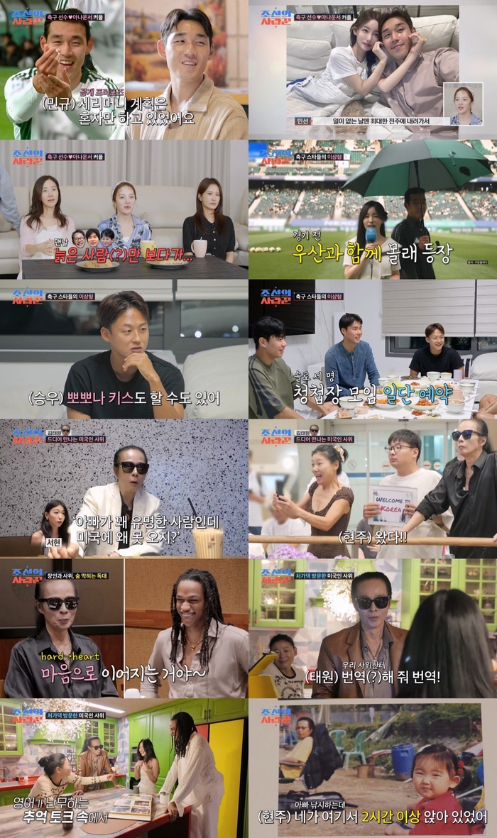 사진|TVCHOSUN‘조선의사랑꾼’[스포츠서울|이수진기자]TVCHOSUN극사실주의다큐예능‘조선의사랑꾼’에‘7살연상연하커플’이자아나운서와축구선수예비부부인곽민선♡송민규가새로운사랑꾼으로합류,젊은신혼의설렘가득한일상을공개했다.이날방송은전국시청률2.8%,분당최고3.3%(닐슨코리아,수도권기준)를기록하며동시간대종편시청률1위를차지했다.29일방송에서는항저우아시안게임금메달리스트이자K리그스타공격수송민규와‘축구여신’으로불리는스포츠아나운서곽민선의풋풋한연애시절자료영상이공개됐다.두사람은5년전방송인터뷰로처음알게됐으며,당시21살송민규가먼저연락하며연인으로발전했다.곽민선은“관계가노출되면민규가신경쓸까봐최대한숨기려고했다”며비밀연애당시를회상했다.특히축구경기장에서송민규가골세리머니로프러포즈한영상이공개돼눈길을끌었다.현장에없었던곽민선은“팬들이‘누나,결혼해요?’라고물어볼정도였다”며당시를회상했다.이어다음날송민규가정식프러포즈를진행한사실도공개됐다.곽민선은전북현대모터스FC소속남편을위해전주에서신혼집을꾸리고서울에오가며생활중이다.VCR에서는잠옷차림으로제작진을맞이한두사람의알콩달콩한신혼공간이공개돼시청자들의미소를자아냈다.방송에서는송민규의팀동료전진우,이승우,송범근이신혼집집들이를위해출격했고,곽민선은전복등스태미나에좋은음식을직접준비하며훈훈함을더했다.집들이에서두사람은연애시절일화를자연스럽게공유하며웃음을자아냈다.한편,미국비자발급이재차거절된김태원은3년만에딸김서현과‘뉴욕사위’데빈을만나는설렘과미안함을동시에드러냈다.김태원은“딸이‘아빠가한국에서유명한데왜못오지?’라며궁금해했다”며속내를털어놨다.이후김태원은공항과처가방문을통해가족과의소중한시간을보내며훈훈한부녀관계를보여줬다.한편TVCHOSUN‘조선의사랑꾼’은매주월요일오후10시에방송된다[email protected]©스포츠서울.무단전재및재배포금지.