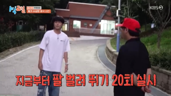 [스타뉴스|김정주기자]/사진=KBS2TV예능프로그램'1박2일시즌4'배우유선호가촬영도중난데없이해병대훈련을받았다.28일방송된KBS2TV예능프로그램'1박2일시즌4'에서는경상남도의령군에서펼쳐지는여섯멤버의'쩐쟁이야'두번째이야기가그려졌다.이날베이스캠프에도착한멤버들은숙소에놓여있는간식과국제경제신문을보고고개를갸웃했다.멤버들은이내신문을들춰보며휴식을취했지만,유선호는소파에누워휴대폰에몰두했다.이때제작진이유선호를호출했고,유선호는"나신문아예안봤는데탈락인가?"라고불안해하며발걸음을향했다.숙소앞에서그를기다리고있는의문의사나이는바로해병대교관이었다.유선호는교관의지시로팔벌려뛰기20회를실시했고,여전히어리둥절한표정을짓는그에게교관은"'부자는누워서쉬지않는다'는규칙을어겼다"라고지적했다./사진=KBS2TV예능프로그램'1박2일시즌4'숙소에돌아온뒤"악"으로만대답하는유선호를보고멤버들은수상한낌새를눈치챘다.문세윤은벽에붙은프린트물을보더니갑자기세수한뒤명상을하는등알수없는행동을해시선을모았다.그가본건'부자가지켜야할20가지습관'이었다.이를본조세호는문세윤을따라히든미션을수행했다.그런가하면유선호에이어김종민과이준,딘딘역시누워서휴대폰을봤다는이유로교관에게호출돼벌칙을수행했다.김정주기자[email protected]©스타뉴스&starnewskorea.com,무단전재및재배포금지