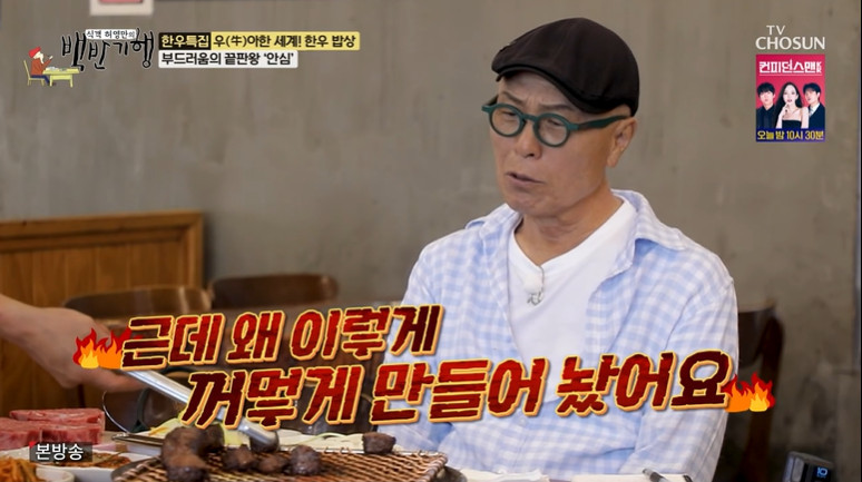 TV조선‘식객허영만의백반기행’캡처TV조선‘식객허영만의백반기행’캡처[뉴스엔장예솔기자]만화가허영만이한우에진심인모습을보였다.9월28일방송된TV조선'식객허영만의백반기행'에서는이원일이출연한'일두백미한우특집'이전파를탔다.이날허영만과이원일은굴피참나무백탄으로고기를굽는한우맛집을찾았다.첫번째로나온메뉴는압도적인두께를자랑하는안심이었다.사장이안심굽는모습을지켜보던허영만은"왜이렇게꺼멓게만들어놨냐"고불만을토로했다.이에사장은"겉만그렇다.안은이븐하게익었다"고말해웃음을자아냈다.뉴스엔장예솔imyesol@기사제보및보도자료[email protected]ⓒ뉴스엔.무단전재&재배포금지Copyright©뉴스엔.무단전재및재배포금지.