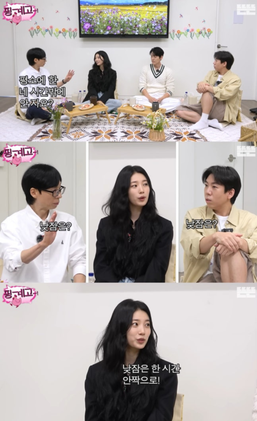 사진|뜬뜬DdeunDdeun유튜브채널캡쳐[스포츠서울|조선경기자]배우수지가‘다이루어질지니’의홍보차출연한‘핑계고’에서반전일상을소개했다.9월27일유튜브채널‘뜬뜬DdeunDdeun’에는‘가을바람은핑계고’제목의영상이공개됐다.해당영상에는넷플릭스‘다이루어질지니’에서함께호흡을맞춘배우수지와김우빈이출연했다.두사람은작품홍보를위해출연한‘핑계고’에서일상을공개하며사람들의시선을집중시켰다.먼저수지와김우빈은본인들의수면시간을밝혔다.김우빈은“일찍일어나진않는다.쉬는날이면오전10시반정도에일어난다”며“그밑으로자면정신을못차리겠다”고말했다.그런데“수지씨는잠을진짜안잔다”며말을덧붙였다.이에수지는“잠을오래자는편이아니다,한4시간정도잔다”고고백했다.“핑계고”촬영당일날도오전2~3시에잔후오전5시에기상했음을밝혀유재석과양세찬은놀라움을금치못했다.수지는“낮잠을좋아하지만일때문에잘자지못한다”라며낮잠시간도1시간밖에되지않는다고얘기했다.“오래자면오히려피곤하다”고했다.사진|뜬뜬DdeunDdeun유튜브채널캡쳐또한,아침메뉴에대해얘기하던중수지는“저는라면을좋아한다”고말하자,양세찬은“아침다섯시에?”라며놀랐고,김우빈은“자극적인음식을자주먹고어떻게관리를하는지모르겠다”고했다.유재석은“나도라면을좋아하지만먹고싶어도아침공복에라면은참는다.”고말했다.이에수지는“라면을먹어야든든한느낌이있다”고답했다.라면을어떻게먹는지묻는양세찬의질문에수지는“물만두를넣어먹는다”라며“아침에는그렇게먹지않고,현장에가면컵라면을먹는다”라고얘기했다.김우빈이“현장에서도이런라면아니면김치짜글이이런거먹더라”고폭로하자,수지는“이젠좀줄여보려고한다.건강을좀챙겨보겠다”고선언하면서도‘삼시세끼라면먹은적있냐’는질문에“있다.라면을너무좋아한다.종류바꿔서먹었다.면을일단너무좋아한다”고밝혀놀라움을안겼다.한편,10월3일공개되는넷플릭스오리지널시리즈‘다이루어질지니’는천여년만에깨어난경력단절램프의정령지니(김우빈분)가감정결여인간가영(수지분)을만나세가지소원을두고벌이는스트레스제로,판타지로맨틱코미디다[email protected]©스포츠서울.무단전재및재배포금지.
