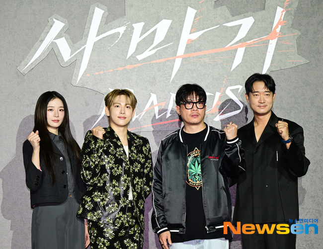왼쪽부터박규영,임시완,이태성감독,조우진[뉴스엔글장예솔기자/사진표명중기자]'길복순'스핀오프영화'사마귀'가베일을벗었다.9월25일오후서울광진구롯데시네마건대입구에서넷플릭스영화'사마귀'(감독이태성)제작보고회가진행됐다.이자리에는이태성감독,임시완,박규영,조우진이참석했다.'사마귀'는지난2023년공개된넷플릭스영화'길복순'의스핀오프작품이다.이태성감독은"'길복순'에서두번정도사마귀가휴가를떠났다고언급된바있다.길복순(전도연분)과차민규(설경구분)가과거세대1인자였다면'사마귀'는그뒤를잇는라이징킬러들의이야기를담고있다"고작품을소개했다.'길복순'의변성현감독은직접각본에참여했다.이태성감독은"'길복순'이공개되고반응이굉장히폭발적이었다.대사로만언급되는'사마귀'라는인물이백지상태였다.변성현감독님도,저도누군가와시나리오를함께작업해본적이없어서조심스러웠다.서로어떤생각을갖고있는지알수있도록충분한시간을가졌다"고전했다.이어"젊고실력으로인정받은인물이잘다니던회사가흔들릴때어떻게할것인지궁금했다.젊다면어리숙하고미숙하고실수가있을텐데그런것들이이야기를파생시키는데도움이될것같았다.죽마고우같은친구와갈등구조를갖는것도재밌을거라고생각했다"고털어놨다.한편'사마귀'는모든룰이무너진살인청부업계에긴휴가후컴백한A급킬러'사마귀'와그의훈련생동기이자라이벌'재이'그리고은퇴한레전드킬러'독고'가1인자자리를놓고벌이는대결을그린액션영화다.오는26일넷플릭스를통해공개된다.뉴스엔장예솔imyesol@/표명중acepyo@기사제보및보도자료[email protected]ⓒ뉴스엔.무단전재&재배포금지Copyright©뉴스엔.무단전재및재배포금지.