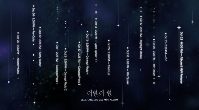 판타지오제공[OSEN=장우영기자]가수이창섭이10월22일컴백카운트다운에돌입했다.이창섭은23일오후공식SNS를통해두번째솔로미니앨범‘이별,이-별’의스케줄러이미지를공개했다.공개된이미지는빼곡한티징일정과더불어밤하늘을수놓은별자리와눈물이주르르떨어지는모양을연상케하는디자인이이목을집중시킨다.앨범명‘이별,이-별’과도연관되는‘별’키워드가과연어떤트랙과이별이야기로펼쳐질지궁금증을높인다.스케줄러에따르면이창섭은10월22일컴백에앞서자신의생일숫자인오후2시26분에맞춰연일다채로운콘텐츠를선보인다.이달앨범프리뷰,스토리티저,10월에는콘셉트포토4종,리릭스포일러,트랙리스트,뮤직비디오스포일러및티저,하이라이트메들리,D-1티저를차례로오픈한다.‘이별,이-별’은이창섭이지난해발표한정규1집‘1991’이후1년여만에선보이는앨범단위의작품이다.특히각종음원차트상위권에견고하게자리하며식지않는인기를이어가고있는히트곡‘천상연’,‘한번더이별’을잇는이창섭의더욱깊어진이별감성을만날것으로기대를모은다.‘올라운더보컬강자’이창섭의솔로미니2집‘이별,이-별’은오는10월22일오후6시각종온라인음원사이트를통해발매된다.‘이별,이-별’피지컬앨범에대한예약판매는이달26일오후2시부터각종음반판매처에서오픈될예정이다.한편,이창섭은최근뮤지컬‘멤피스’의2023년초연에이어재연에서휴이역을맡아관객들의호평을이끌었다.다양한OST와페스티벌,대학축제참여로도팬들과만나고있으며,ENA예능‘살롱드돌:너참말많다’에서는MC로활약중이다./[email protected]©OSEN.무단전재및재배포금지.