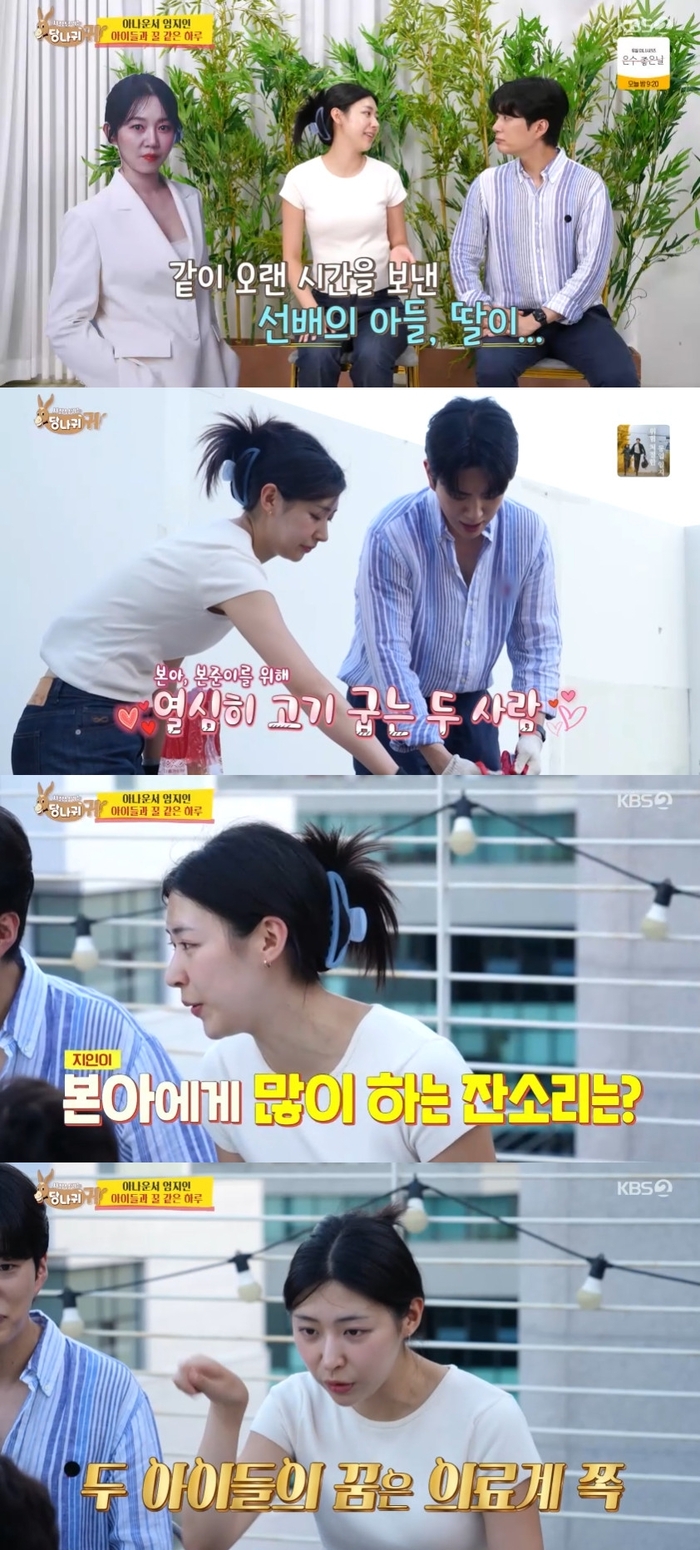 ‘사당귀’.사진lKBS김진웅이오랜만에‘사당귀’에얼굴을비췄다.21일오후방송된KBS2예능프로그램‘사장님귀는당나귀귀’(이하‘사당귀’)에서엄지인가족은아나운서후배김진웅,홍주연이준비한삼겹살,마라탕을먹었다.이날방송에서VCR을보던박명수는“진웅이는왜또데려왔냐”며헛웃음을지었다.홍주연은“본아,본승아부모님중누가더잔소리많이해?뭐가지고잔소리많이해?”라고물었다.이에첫째본아는“둘다비슷해요.공부로잔소리해요.잠깐쉬려고다른데보면엄마가똑바로하라고그러잖아”라며속상해했다.김진웅이질문하는장면도보였지만전체샷이잡히거나목소리만나올뿐대부분편집됐다.‘사당귀’는매주일요일오후4시45분KBS2에서만날수있다.[서예지스타투데이객원기자]Copyright©스타투데이.무단전재,재배포및AI학습이용금지