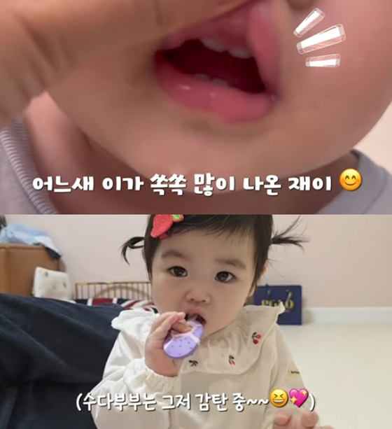 [스타뉴스|최혜진기자]/사진=유튜브박수홍행복해다홍방송인박수홍의딸재이양이첫양치질에성공했다.20일유튜브채널'박수홍행복해다홍'에는'혼자양치질한다고!?'라는제목의영상이올라왔다.영상에서박수홍아내김다예는"재이치아가6개정도났다.오늘부터양치를해보려고하는데재이가칫솔에적응을해야할거같아서(칫솔을)가지고놀수있게해주려고한다"고말했다.이어"양치를잘할수있을지걱정반,기대반"이라는심경을털어놨다.칫솔을받아든재이는자연스럽게입안에넣고양치질을했다.이를본박수홍,김다예부부는기특한듯웃음을터트렸다.김다예는재이의아랫니와윗니를공개하기도했다.그는"재이이렇게아랫니도잘나고윗니도나고있다"고알렸다./사진=유튜브박수홍행복해다홍최혜진기자[email protected]©스타뉴스&starnewskorea.com,무단전재및재배포금지