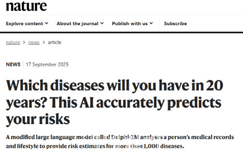 유럽연합연구진기존AI한계뛰어넘는모델개발[이데일리김승권기자]유럽연구진이개발한인공지능(AI)모델‘델파이-2M(Delphi-2M)’이1000가지이상질병의발생가능성을한번에예측할수있다고17일(현지시간)국제학술지‘네이처’에발표됐다.기존질병예측AI가한두가지질환에만집중했던한계를뛰어넘어,의료AI분야에새로운전환점을제시한것으로평가받고있다.ChatGPT기반기술로의료패턴학습독일암연구센터(DKFZ),유럽생물정보학연구소(EMBL),덴마크코펜하겐대학교등의공동연구팀이개발한델파이-2M은OpenAI의‘GPT-2’언어모델을기반으로구축됐다.연구진은“진단순서를학습하는것이텍스트에서문법을배우는것과유사하다”며“의료데이터의패턴,선행진단,진단의조합과순서를학습한다”고설명했다.AI모델에는2006년부터2020년까지영국바이오뱅크(UKBiobank)에속한40만명의익명화된의료데이터80%가학습자료로사용됐다.영국바이오뱅크는영국국민약50만명의과거질병진단기록,질병발생여부,건강상태,유전체,생활습관데이터를장기적으로수집한대규모데이터베이스다.성능검증을위해연구팀은영국바이오뱅크데이터의나머지20%와덴마크국가질환레지스트리의193만명의료데이터를활용했다.60세까지의개인의료데이터를입력하고이후20년간1231가지질병발생시점을시뮬레이션한결과,진단정확도(AUC)는평균0.76,10년후질병예측정확도는0.7에달했다.네이처기사갈무리(사진=네이처홈페이지)델파이-2M의예측성능은기존단일질병예측모델들과비슷한수준이면서도1000가지이상의질병을동시에예측할수있다는점에서혁신적이다.특히심근경색,제2형당뇨병,패혈증과같이명확한진행경로를가진질병에서더높은정확도를보였다.델파이-2M의또다른강점은투명성이다.연구팀은‘샤플리가산설명법(SHAP)’을활용해AI판단의근거를분석했다.예를들어췌장암위험이높다는판단의근거로소화기질환이력이췌장암발생위험을19배높인다는의학적으로타당한결론을도출했다.또한우울증·치매등정신질환과출산·임신관련질환이그룹별로함께나타나는패턴도정확히파악했다.델파이-2M의설명가능성은최근의료AI분야의주요트렌드와일맥상통한다.지난10일‘네이처리뷰바이오엔지니어링’에발표된이수인워싱턴대교수의리뷰논문에서도의료AI의투명성이강조됐다.지난해삼성호암상을수상한이교수는의료,금융,법률등설명책임이중요한분야에서AI판단을설명할수있는기술을연구하고있다.최근연구들에서도SHAP과LIME(LocalInterpretableModel-agnosticExplanations)같은설명가능한AI기법이다양한의료분야에적용되고있다.알츠하이머병조기진단,췌장암예측,심장질환진단등에서SHAP을통해AI의판단근거를명확히제시하는연구가활발하다.기존의료AI와차별화포인트는기존의료AI모델들은대부분단일질병예측에집중해왔다.심장병위험예측,특정암진단,감염병탐지등개별질환에특화된모델들이주를이뤘다.의료진이포괄적인건강평가를위해서는수십개의개별모델을각각실행해야하는번거로움이있었다.델파이-2M은이런한계를극복하고다중질병예측이라는새로운패러다임을제시했다.스탠포드연구에따르면ChatGPT-4와같은대형언어모델들이단독으로는92점의높은진단성능을보이지만,의사들과의협력에서는아직충분한활용이이뤄지지않고있다.이는의사-AI협력모델의개선이필요함을시사한다.연구팀은“델파이-2M이질병위험이높은사람들을식별하고맞춤형의료서비스계획을지원하는데도움이될것”이라고기대했다.현재심장마비나뇌졸중위험에따라콜레스테롤저하제인스타틴을처방하는것처럼,델파이-2M도고위험환자를식별해조기개입과질병예방을가능하게할전망이다.하지만임상적용까지는추가연구가필요하다.델파이-2M의학습데이터가주로40-60세영국인에서나왔기때문에아동·청소년건강사건이과소대표되고특정인종집단이충분히반영되지않은한계가있다.연구팀은다양한인구집단과국가에서추가검증을계획하고있으며,몇년내임상사용이가능할것으로예상한다고밝혔다.김승권([email protected])Copyright©이데일리.무단전재및재배포금지.