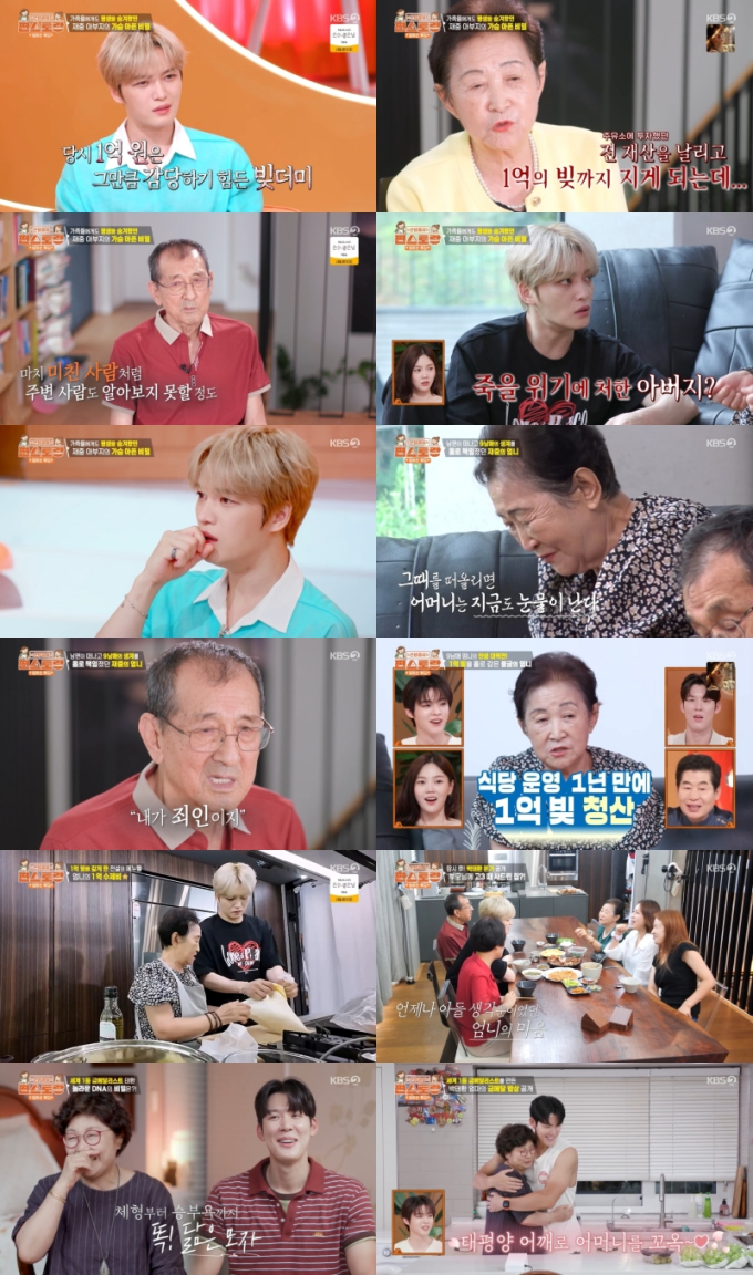 ‘편스토랑’엄마손특집(사진:KBS)‘신상출시편스토랑’김재중이처음듣는부모님의파란만장인생스토리에울컥했다.9월19일방송된KBS2TV‘신상출시편스토랑’(이하‘편스토랑’)은다가올민족대명절추석을위해제작진이야심차게준비한‘엄마손특집’첫번째편으로진행됐다.제목부터가족의사랑이묻어나는특집인만큼국민효자로불리는요리천재중김재중과영원한마린보이박태환이출격했다.요리장인어머니와함께출격한두국민효자덕분에웃음과감동이가득한시간이었다.이날방송은수도권기준시청률4.1%를기록하며전주대비상승,지상파-종편-케이블포함동시간대전채널예능1위를차지했다.(닐슨코리아)이날김재중은무릎,골반에이어발목까지안좋은어머니를걱정했다.김재중아버지는“물한방울안묻히고살게해준다고했는데고생만시켰다”라며아내를향한미안함을내비쳤다.잠시후부자(父子)곁으로온김재중어머니는파란만장했던과거이야기를털어놨다.그중에는김재중도처음듣는이야기도있었다.너무도충격적이라‘편스토랑’식구들도모두놀랐을정도.‘금수저’라고할수있을만큼부족함없는청년시절을보낸김재중아버지는결혼후운수업을하며탄탄대로를걸었다.그러나지인들의사업제안에함께했다가큰실패를겪었고1980년대1억이라는어마어마한빚더미에안게됐다.당시1억은지금과비교할수없을정도의큰돈.김재중아버지는“그일로충격받아서사람들도못알아봤다.나를정신병자라고했다”라고말했다.김재중어머니는“아버지도파란만장풍파많이겪었다.죽을고비도많이넘기고”라며그때를회상했다.큰충격에빠진아버지에게신병까지왔다는것.결국김재중아버지는한동안절에서생활했고김재중어머니혼자9남매생계를책임져야했다.김재중어머니는9남매를먹여살리기위해행상부터식당일까지쉴새없이일해야했다고.김재중어머니는“그때생각하면죽으려고해도죽을수도없고…”라고말했다.그럼에도가족을위해계속부딪힌김재중어머니는우연히식당을시작하면서인생역전기회를잡았다.김재중어머니는족발,수제비,보리밥을메뉴로한식당을공주에열었는데SNS등도없던당시입소문을통해대박을터뜨린것.김재중어머니는1년만에1억빚을모두갚고남편과끌어안고울었다고회상했다.이를들은김재중은“엄마대단하다”라며크게놀라고또뭉클해했다.이날김재중은어머니와함께수제비를만들었다.9남매가족의생계를책임졌던,가족을향한어머니의사랑과진심이가득담긴메뉴였다.이외에도김재중은어머니의맛에자신만의팁을더한족발등도만들었다.손맛도가족사랑도꼭닮은김재중모자(母子)였다.그런가하면영원한마린보이박태환역시어머니와환상의케미를자랑했다.이날박태환은19세시절수영으로세계1등을차지했을때부모님께장만해드린본가를찾았다.박태환은집에돌아온어머니를꼭안아주며애교만점아들임을보여줬다.또박태환과어머니는서로운동신경과승부욕이꼭닮았다고해이후‘엄마손특집’에서함께어떤요리를선보일지기대하게했다.김재중과박태환.‘엄마손특집’을위해국민효자들이나섰다.그리고또한명의효심가득한편셰프가출격할예정.벌써부터대박예감인‘엄마손특집’은9월26일금요일저녁8시30분방송되는KBS2TV‘신상출시편스토랑’에서계속된다.박지혜기자[email protected]뉴스연예팀기사제보[email protected]©bnt뉴스.무단전재,재배포및AI데이터활용금지