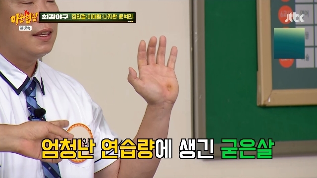 JTBC‘아는형님’캡처JTBC‘아는형님’캡처[뉴스엔서유나기자]전야구선수나지완이'최강야구'합류이유를밝히며열심히연습하며굳은살이생긴손을공개했다.9월13일방송된JTBC예능'아는형님'(이하'아형')499회에서는슈퍼주니어콘서트탓에자리를비운김희철,신동을대신해장성규,김환이일일형님으로출격한가운데'최강야구'정민철,이대형,나지완,윤석민이형님학교로전학을왔다.이날나지완은"내가아기에대한애정이크다.은퇴할때3살이었다.아빠를잘모를때은퇴식을했는데아들이은퇴식시구를했다.최근에'아빠은퇴식한번더하면안돼?'라고하더라.'시구를한번더하고싶다'고.그만큼야구에미쳐있고.이런기회가나한테왔으면좋겠다했는데딱왔다"며이때문에출연을결심했다고전했다.정민철은나지완이얼마나열심히하고있는지는손을통해알수있다고말했다.실제로보니나지완의손엔굳은살이생겨있었다.나지완은"아들도바라고갈증이다시야구로서보여주고싶더라"고이렇게열심히연습하는이유를밝혔다.선수때보다절실해보인다는말에는"공백이4년정도되다보니야구방망이가쇳덩이같더라.어느정도올라와서가장자신있는게홈런인데연습때넘어가더라"고자랑했다.한편'최강야구'는은퇴한프로출신야구선수들이함께팀을이뤄다시야구에도전하는리얼스포츠예능프로그램으로,이종범감독을중심으로심수창이플레잉코치로합류하고김태균,윤석민,나지완,이대형,권혁,윤길현,윤희상,이현승,오주원,오현택,문성현,나주환,이학주,강민국,최진행,조용호,허동환등역대KBO레전드선수들이등판한다.여기에KBO를대표하는베테랑중계진인한명재캐스터와한화이글스전설적인영구결번출신정민철해설위원이중계진으로합류한다.뉴스엔서유나stranger77@기사제보및보도자료[email protected]ⓒ뉴스엔.무단전재&재배포금지Copyright©뉴스엔.무단전재및재배포금지.
