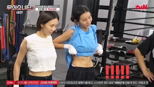 tvN‘무쇠소녀단2’캡처tvN‘무쇠소녀단2’캡처[뉴스엔서유나기자]가수겸배우유이의복근이공개됐다.9월12일방송된tvN예능'무쇠소녀단2'10회에서는유이,금새록,박주현,설인아의복싱챔피언도전기가이어졌다.푸껫에서의훈련을마치고귀국하고서도무소단멤버들은훈련을이어갔다.상체근육을집중강화하는암워킹훈련을받으면서설인아는팔굽혀펴기까지하는놀라운근력을보여줬다.이후설인아는우람한팔근육을자랑했다.마찬가지로암워킹훈련을한유이는상의를살짝걷어복근을드러냈다.쩍쩍갈라진배가놀라움을안겼다.그런가하면박지훈코치는유이가살이너무빠지는걸걱정했다.54㎏까지근육량을늘리는게목표였던유이는하루에3,4시간운동하는바람에체지방이빠져몸무게가51㎏라고밝혀걱정을받았다.유이는"탄수화물을많이드시라"는말에삼겹살,초밥,달걀토스트등으로벌크업을위해애썼다.한편유이는키172㎝다.뉴스엔서유나stranger77@기사제보및보도자료[email protected]ⓒ뉴스엔.무단전재&재배포금지Copyright©뉴스엔.무단전재및재배포금지.
