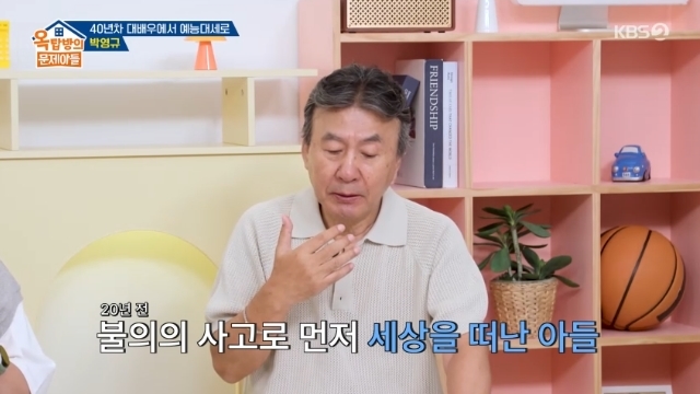 KBS2TV‘옥탑방의문제아들’캡처KBS2TV‘옥탑방의문제아들’캡처[뉴스엔서유나기자]배우박영규가2세를더안낳기로결심한사연을털어놓았다.9월11일방송된KBS2TV'옥탑방의문제아들'283회에서는박영규가게스트로출연했다.이날박영규는지금의아내와2세고민을한때한사실을털어놓았다.박영규는"내가상처가있잖나.고민했다.아내는낳을수있다고했는데내가우리아들트라우마가너무세니까.상처가아직안지워졌다.겉으로멀쩡하고웃고살지만상처가안지워져내가겁이나더라.혹시잘못될까봐"라고토로했다.박영규는결국"고민하다가'여보난다시는상처아픔을겪고싶지않다.지금도그거만생각하면힘든데.대신당신딸데려왔잖아.당신딸은우리아들못지않게잘키워줄게'"라고했다며"아내가그말듣고눈물을흘렸다"고전했다.한편박영규의아들박달군은2004년미국유학중22세의나이로교통사고를당해세상을떠났다.박영규는최근KBS2TV예능'살림하는남자들시즌2'에서아내,재혼으로얻은딸과함께죽은아들을위해마련한300평규모의수목장에방문했다.박영규는생전아들이자동차를전공,일본자동차회사에입사하기로결정돼있었다며이에자동차피규어를함께묻어줬다고밝혔다.뉴스엔서유나stranger77@기사제보및보도자료[email protected]ⓒ뉴스엔.무단전재&재배포금지Copyright©뉴스엔.무단전재및재배포금지.