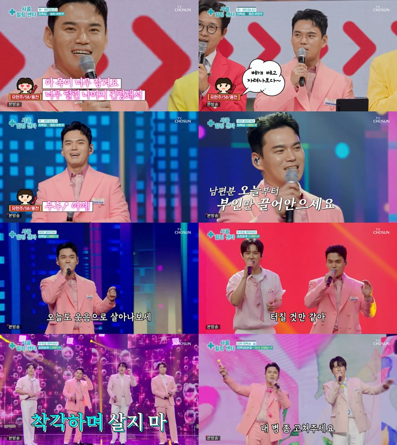 TV조선‘사랑의콜센타세븐스타즈’가수천록담이‘인간치유제’로활약했다.천록담은지난11일밤방송된TV조선트로트예능프로그램‘사랑의콜센타세븐스타즈’에출연했다.이날방송은‘사콜힐링센터’특집으로,강원도홍천에귀촌한지3년된주부신청자의선택을받았다.사연자는“신혼초에남편이저를배신했다.신혼초엔잠잘때두다리로저를껴안고잤다.‘날너무사랑하는구나’라고생각했는데1년도되기전에기다란베개를사서안고잔다.그상처가30년넘도록계속되고있다”라고힐링을원했다.‘여여’를신청곡으로받은천록담은한껏농익은트로트발성과독보적인꺾기창법으로모두를반하게만들었다.또한여유로운무대매너와진정성넘치는열창으로안방을흥으로물들였다.이에사연자는“천록담의노래로마음에반창고를붙이니까다나은거같다.너무힐링된다”라고극찬해훈훈함을더했다.이어천록담은정인과의듀엣무대를걸고춘길,손빈아,추혁진과‘거부’무대를꾸몄다.폭발적인가창력과소울풀한감성으로폭넓은음악스펙트럼을또한번입증함은물론,완벽한호흡으로정인의칭찬을이끌었다.또한춘길과‘의사선생님’으로듀엣무대를펼쳤고유쾌한퍼포먼스와구수한음색으로특별한위로를건넸다.한편천록담은‘미스터트롯3’전국투어콘서트를비롯해TV조선‘사랑의콜센타세븐스타즈’등다양한방송으로열일행보를이어간다.안병길기자[email protected]©스포츠경향.무단전재및재배포금지.