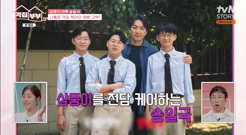 (엑스포츠뉴스김예은기자)배우송일국이독박육아고충을전했다.11일방송된tvNSTORY'각집부부'에서는김정민이송일국,김진수,민영기와만난모습이그려졌다.이날송일국은아내와각집살이중이라며아내는지방발령으로지방에서근무중이라고밝혔다.세아이는모두송일국이케어하고있는것.그는"애는내가보고있다.아내는지방에내려가있고"라며"다른게힘든게아니라학원때문에.계속라이딩을해줘야한다"고고충을드러냈다.이에김진수는"그래서연습끝나고부리나케가는거구나"라고말하기도했다.아내와따로사는것에장점도있을까.그는"장점은없는것같다.보고싶다.아내빈자리가크긴하다.애들보는게저혼자힘들더라"고말했다.반면김정민은"김정민:단순하게나같은경우에는청소를매일해야할걸2~3일에한번해도되고귀찮은걸좀나중에해도된다.단점은혼자있어서외로움때문에가끔애들이랑대화를한다.누가보면미친X이다"라고송일국과는반대의답을해웃음을줬다.송일국은판사인아내와결혼해슬하에세쌍둥이아들대한,민국,만세를뒀다.세아이는2012년생으로현재중학생이다.그는"제가어깨동무를하면이렇게한다"며사춘기가온삼둥이가어깨동무를거부한다고털어놔안타까움을자아냈다.또한"저랑만세는맛있는게있으면먼저먹는다.근데민국이는엄마다.아끼고아꼈다가마지막에먹으려고한다"며삼둥이의다른성격을설명해주기도했다.사진=tvNSTORY방송화면김예은기자[email protected]©엑스포츠뉴스.무단전재및재배포금지.