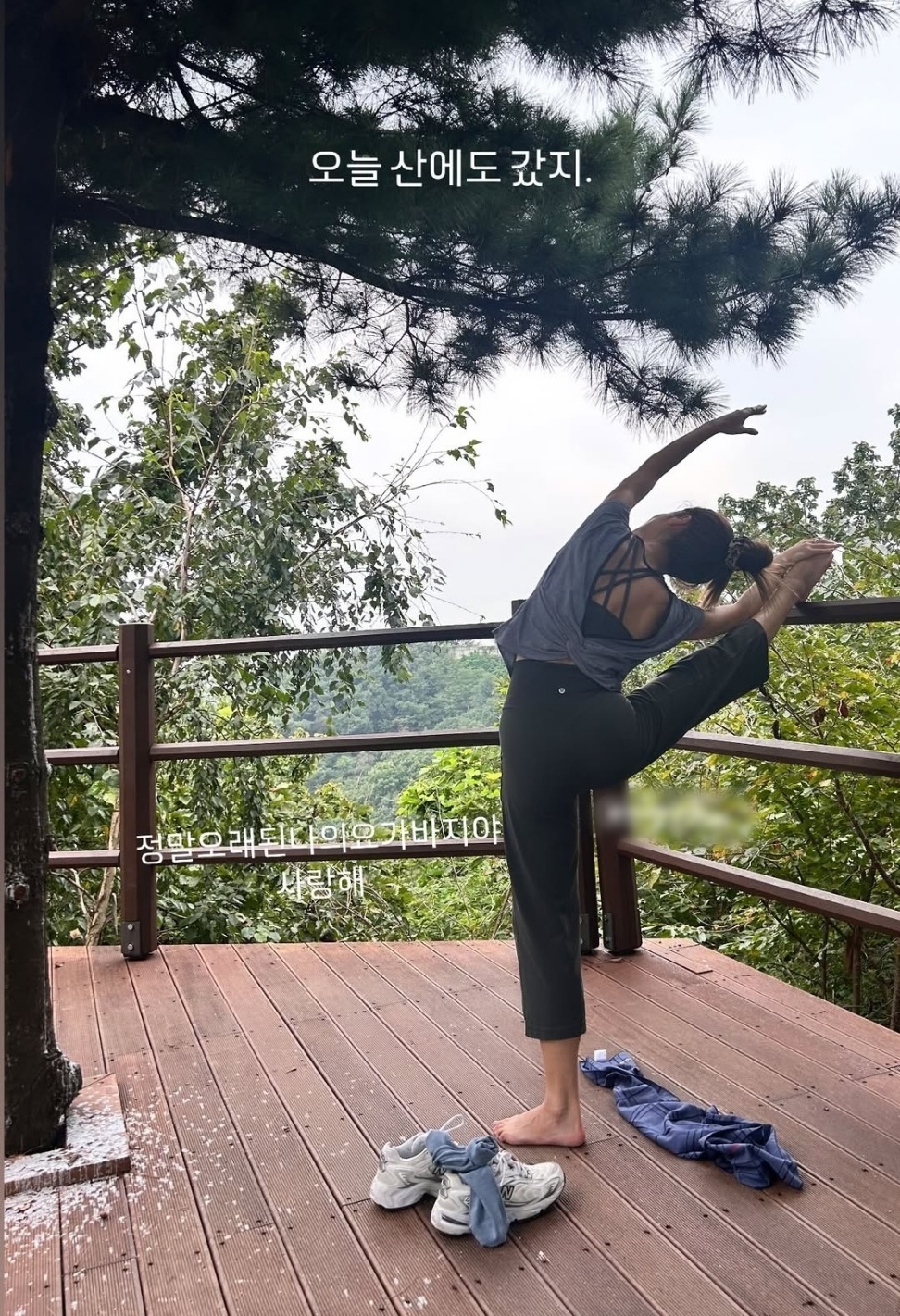 이윤지소셜네트워크서비스계정이윤지소셜네트워크서비스계정[뉴스엔서유나기자]배우이윤지가운동에푹빠진일상을전했다.이윤지는9월9일자신의소셜네트워크서비스계정에"오늘산에도갔지.정말오래된나의요가바지야사랑해"라는글과함께사진을게재했다.사진속엔산정상에올라신발을벗고스트레칭하는이윤지의모습이담겨있다.다리를찢어유연성을드러낸이윤지는요가가부좌자세도보여줬다.산에올라가서까지요가수련을한이윤지는"매일의나는어떻게시작되고채워지고있는지운동할때제일많이깨닫게되는것같아.나랑같이산에가줘서고마워친구야"라는감사글을덧붙였다.운동과감사로채워나가는이윤지의일상이건강미를자아낸다.한편이윤지는지난2014년치과의사정한울과결혼해슬하에2녀를두고있다.최근이윤지는연극'디이펙트'에출연했다.뉴스엔서유나stranger77@기사제보및보도자료[email protected]ⓒ뉴스엔.무단전재&재배포금지Copyright©뉴스엔.무단전재및재배포금지.