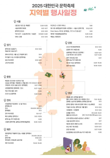 국립한국문학관과지역문학관협력사업본격가동‘2025대한민국문학축제’행사일정.국립한국문학관제공국립한국문학관(관장문정희)은10일‘2025대한민국문학축제’에지역문학관9곳과함께특별전시및문학체험프로그램으로참여한다고밝혔다.2027년상반기에공식개관하는국립한국문학관은전국100여개지역문학관과협력해지역문화활성화와문학진흥등역할을수행하고있다.이번문학축제에참여하는지역문학관과의협력사업을통해국립한국문학관은중앙관으로서의역할을강화하고지역문학관협력망구축을공고화할예정이다.국립한국문학관은지난4월2025대한민국문학축제에함께참여할경남문학관(창원),김유정문학촌(춘천),대전문학관(대전),목포문학관(목포),석정문학관(부안),신동엽문학관(부여),요산김정한문학관(부산),이육사문학관(안동),제주문학관(제주)등을권역별로대표문학관을선정한바있다.대한민국문학축제에지역문학관특색있는프로그램선보여국립한국문학관과지역대표문학관들은문학축제기간중전국에서저마다특색있는프로그램을운영할예정이다.△국립한국문학관은우리나라의대표적고전소설인‘구운몽’나주본발간300주년을기념하여‘꿈’을주제로한전시‘꿈으로지은집’특별전개최△춘천김유정문학촌은김유정의소설‘봄·봄’과‘동백꽃’을연극형참여프로그램으로재구성△부산요산김정한문학관은김정한의대표작‘모래톱이야기’웹툰제작△안동이육사문학관은이육사의‘광야’와‘꽃’을케이팝스타일미디어아트로제작△제주문학관은‘제주세계평화의섬’지정20주년을기념해인도의노벨문학상수상자타고르와한강작가를입체적으로조망하는전시와심포지엄을개최한다.이외에도경남문학관,목포문학관,석정문학관,신동엽문학관등은텍스트중심의문학을음악·미술·연극·공연등다양한복합예술장르로재해석한다채로운콘텐츠를선보인다.작가와의토크콘서트,낭독회,연극과공연,문학탐방등대중참여형프로그램을통해문학의대중적접근성을높이고,지역작가와문학관련단체,지역서점등과의협력도확대할예정이다.문학관중앙관으로서국립한국문학관역할강화문정희국립한국문학관장은“지역문학관들이이번축제동참을계기로지역의문학유산을발굴·보존하고케이-문학유산의우수성과예술적확장가능성을알리는구심점역할을수행하기를기대한다”면서“국립한국문학관은전국문학관을대표하는중앙관으로지역문학관의활성화와지역민들의문학향유증진에기여할예정”이라고밝혔다.이영재기자[email protected]©쿠키뉴스.무단전재및재배포금지.
