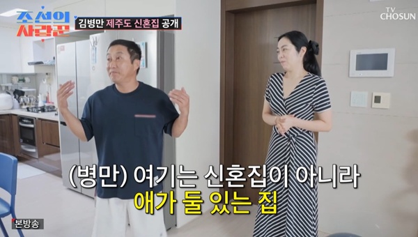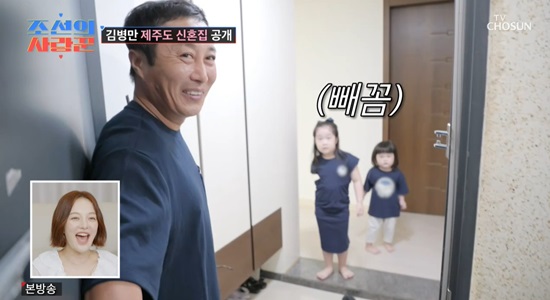 조선의사랑꾼김병만부부/사진=TV조선캡처[스포츠투데이임시령기자]'조선의사랑꾼'김병만이재혼한아내와두자녀와함께거주중인제주도집을공개했다.8일방송된TV조선예능'조선의사랑꾼'에서는코미디언김병만부부의제주도일상이공개됐다.이날제작진은김병만의제주신혼집을찾았다.제작진이집으로들어서자김병만과그의두아이짱이와똑이가반갑게맞이했다.집안은알록달록꾸며졌다.김병만은"여기는신혼집이아니라,애가둘있는집"이라고웃었다.집에는아이의장난감,아이의방,놀이방까지마련됐다.김병만은"저의공간은없다.저는와서잠만잔다.저의공간은쇼파"라고말했다.이어"장난감들다제가사준거다.예전에해외나가면제물건만샀다면요즘엔오로지아기것만산다.저는짱이가치과의사가됐으면좋겠어서계속의사놀이만.아이도말로는치과의사가되겠다더라"고자랑했다.하지만짱이는"경찰되겠다"고웃음을안겼다.[스포츠투데이임시령기자[email protected]]Copyright©스포츠투데이.무단전재및재배포금지.