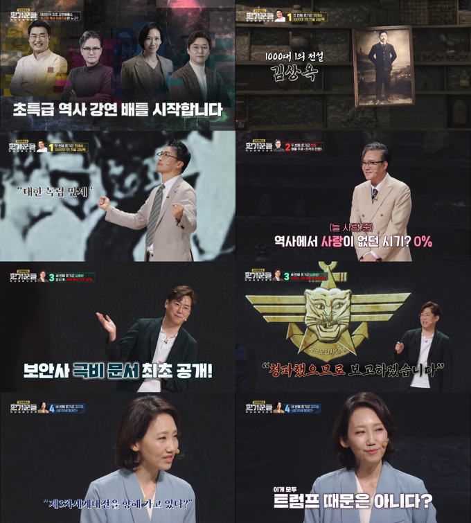 시사/교양‘역사이야기꾼들’(제공:JTBC)막내심용환이첫강연에서우승을거머쥐었다.지난4일(목)방송된대한민국최초역사강연배틀쇼‘역사이야기꾼들’에서는대한민국강연계를평정한레전드4인최태성,썬킴,김지윤,심용환이등판해첫배틀무대를뜨겁게달궜다.시작부터서로에대한살벌한신경전이오가는가운데,심용환이극비문서를최초공개하는전략으로치열한경쟁을뚫고1위를차지했다.‘역사이야기꾼들’1회시청률은전국2.8%,심용환이야심차게준비한극비문서를공개하는장면에서는분당최고시청률3.9%를기록하며순조로운출발을알렸다.(닐슨코리아제공,유료가구기준)대한민국대표레전드이야기꾼들은총100명의청중인‘사(史)심단’의냉정한평가속첫강연배틀을시작했다.내로라하는강연전문가들이지만처음으로평가를받는자리인만큼역사이야기꾼들,일명‘사(史)기꾼’4인방모두극도의긴장감을내비쳤다.‘최악의전쟁’이라는주제에맞게최태성은독립운동가김상옥,썬킴은클레오파트라,심용환은하나회,김지윤은제3차세계대전이야기를준비했다.먼저첫강연자로나선최태성은널리알려진독립운동가가아닌,다소생소한독립운동가‘김상옥’의사를조명했다.최태성은나라를위해몸바친김상옥의이야기를생생하게전달해몰입감을극대화하며깊은감동을안겼다.썬킴은‘비공식사랑전문가’를자처하며,사랑으로권력을좌지우지한‘클레오파트라’이야기로무대를장악했다.특유의맛깔스러운입담은물론폭발적인연기력으로현장의뜨거운호응을얻었다.작은몸에서뿜어져나오는폭발적기운으로‘작은거인’별명을얻은김지윤은최근국제정세에서가장뜨거운이슈인‘제3차세계대전’이야기를쉽고명쾌하게풀어내며‘월드클래스’다운카리스마를보여줬다.그러나그누구도1등을향한집념의심용환은막을수없었다.열정과다로무려94분간최장강연을한심용환은천만영화‘서울의봄’을시작으로,전두환과하나회그리고12.12군사반란의뒷이야기를심층분석하는명강연을펼쳤다.특히심용환은연구과정에서어렵게입수한보안사문건을최초공개하며결국최고의이야기꾼자리를거머쥐었다.쓰디쓴사약을받게되는배틀꼴찌의주인공은썬킴이었다.썬킴은레전드이야기꾼답게사약을먹는마지막순간까지관련된썰을풀며무대의막을내렸다.첫방송부터역사프로그램의한계를넘어웃음과감동,교훈과오락을동시에선사한‘역사이야기꾼들’은매주목요일저녁8시50분에방송된다.한효주기자bnt뉴스연예팀기사제보[email protected]©bnt뉴스.무단전재,재배포및AI데이터활용금지