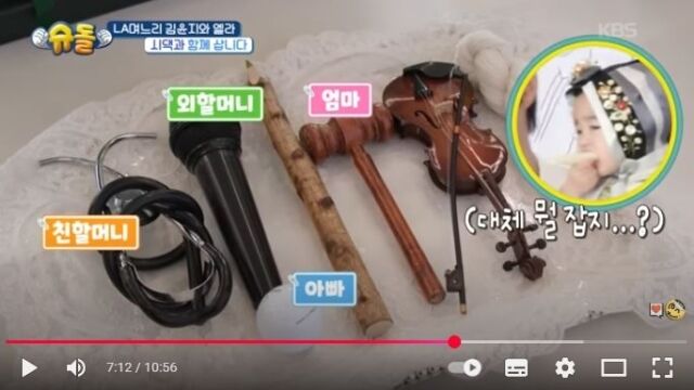 가수겸배우김윤지딸엘라의돌잔치현장이공개됐다./KBS2TV'슈퍼맨이돌아왔다'[마이데일리=서기찬기자]가수겸배우김윤지딸엘라의돌잔치가'이상형월드컵'을방불케하는치열한분위기속에서웃음을자아냈다.지난3일방송된KBS2TV'슈퍼맨이돌아왔다'588회에는3MC박수홍,최지우,안영미와슈퍼맨심형탁,슈퍼맘김윤지가함께출연했다.이날방송에서는김윤지딸엘라의돌잔치현장이공개되었는데,돌잡이도중초유의사태가벌어져눈길을끌었다.돌잡이상에는판사봉,마이크,청진기,연필,골프공,바이올린등이올라왔다.가수겸배우김윤지딸엘라의돌잔치현장이공개됐다./KBS2TV'슈퍼맨이돌아왔다'엄마김윤지는"제가학업에대한미련이조금남아서연필을잡았으면좋겠다"고말했고,아빠최우성은"골프선수를시키고싶다.골프공을잡았으면좋겠다"고소망을밝혔다.한편,외할머니는"마이크",친할머니는"의사(청진기)"를바라며,가족모두가각기다른희망을내비쳐돌잡이이상형월드컵이펼쳐졌다.엘라는여러물건을만져보며가족들의애간장을태우더니,이내고사리손으로골프공을야무지게집어들었다.아빠최우성은환호성을질렀다.이때,'청진기'를원했던친할머니국악인김영임이"한번만다시하면안될까요?"라고애원해돌잡이사상초유의'다시잡기'가진행됐다.그러나엘라는두번째돌잡이에서도골프공을잡아가족들을폭소하게만들었다.한편,엘라의돌잔치에는배우선우용여,축구선수지동원등반가운얼굴들이참석해자리를빛냈다.특히친할아버지인코미디언이상해의동료인최병서,이용식,김학래등개그맨들이총출동하자,안영미는"엘라돌잔치가희극인모임같아요"라고말해웃음을더했다.Copyright©마이데일리.무단전재및재배포금지.