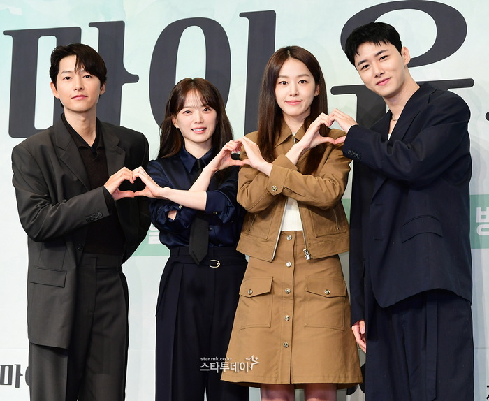 ‘마이유스’제작발표회에참석한송중기,천우희,이주명,서지훈.사진|강영국기자첫사랑의설렘을다시금떠오르게할풋풋한재회로맨스,‘마이유스’가온다.4일서울더링크호텔에서는JTBC새금요드라마‘마이유스’(극본박시현,연출이상엽고혜진)의제작발표회가열렸다.현장에는송중기,천우희,이주명,서지훈과이상엽감독이참석했다.‘마이유스’는남들보다늦게평범한삶을시작한선우해(송중기분)와뜻하지않게첫사랑의평온을깨뜨려야하는성제연(천우희분)의감성로맨스를그린다.어둡고그늘진자리에시리도록눈부신한때를선물한첫사랑과의재회를통해잊고지낸‘나’의조각을되찾아가는여정이따스한웃음속설렘을선사할예정이다.드라마‘유미의세포들’시리즈,‘아는와이프’감성적인작품을섬세한터치로그려낸이상엽감독과‘런온’으로감각적인필력을선보인박시현작가가손을잡았다.송중기는아역배우로데뷔했으나이후우여곡절끝에소설가겸꽃집사장으로일하는선우해역을맡았다.이번작품으로송중기는KBS‘태양의후예’이후9년만의로맨스물로돌아왔다.송중기는“듣고보니그렇다.일부러는아닌데오랜만에로맨스장르를해서설레기도하다”고말했다.그러면서“멜로는배우들에겐가장욕심나는장르다.제겐그렇다.오랜만에설레는대본으로즐겁고영광이었다”고덧붙였다.송중기는“제경력이길지않지만,제캐릭터들복기해보니판타지장르(가많더라).‘늑대소년’에선늑대인간,‘빈센조’에서는가상의인물같은히어로같은인물이었다.생각해보니땅에발을붙이고있지않는캐릭터들많았다.일상적인캐릭터,현실에있을법한캐릭터하고팠는데그게‘마이유스’라설레고감독님덕에재미있게찍었다”고설명했다.천우희는매니지먼트사팀장성제연을연기한다.천우희는“(대표작인)‘멜로가체질’보다더발랄하고신선한느낌”이라고말했다.그러면서“정통멜로에가깝다.‘멜로를왜지금껏안했을까’아쉬울정도였다.멜로를중점적으로해보니제가그간장르물에특화됐다고생각했는데,오히려멜로가체질이더라.멜로의맛느끼면서‘내가멜로체질이구나.로맨스가더찰떡이었나?’싶더라”고너스레를떨었다.그러면서“이야기자체가사건,서사보단감정선인데.미묘하게표현해내는게나름의즐거움이었다”고덧붙였다.이상엽감독은네사람을캐스팅한이유에대한질문을받자“(캐스팅했다기보다)해준다고하니기쁘더라”고겸손하게말했다.이어“선우해는소년이면서지금은30대청년의모습이있어야하고,동생과사는가장의얼굴도다있어야한다.선우해를연기해주니고맙더라”라고애정을드러냈다.또천우희가맡은성제연에대해선“성제연은서울대를그만두고,매니저를하는인물이다.환하게웃을때느낌이제가생각하던제연이와되게비슷하더라.흔쾌히섭외를수락해줬다”고이야기했다.모태린역을맡은이주명과김석주역을연기하는서지훈에대해서는“모태린연기가쉽지않아서캐스팅이힘들었다.이주명배우와미팅을해보니꼭해주면좋겠더라.이주명도‘하고싶다’고해서(캐스팅됐다).서지훈은예전부터눈여겨보고있었다.이조합에잘어울릴것같더라”고설명했다.천우희는“로맨스라는장르가끌렸다.지금아니면안되겠다는마음이었고,송중기라면,한번믿고가보자싶더라”며섭외에응한이유를밝혔다.송중기는“솔직하게더나이들면못할것같았다.또가장확실한이유는천우희였다”며파트너에대한강한믿음을드러냈다.송중기와천우희의캐스팅소식이들려오자팬들은“비주얼합이잘맞는다”며반겼다.송중기는“저는로맨스에서파트너와호흡을중시한다.이런말이반갑더라.제가봐도얼굴합이잘맞는것같아서듣기좋은말이다”라고고마운마음을드러냈다.천우희는“연기호흡도얼굴합만큼좋더라.촬영할때는오히려오누이같단말을들었다.그만큼닮았구나했다”며“연기를하며이야기를많이하는편인데오빠가가지는성향이추진력이좋더라.연기할때의견을물어보며배려해주더라.감정선의결을세밀히들여다보려고맞춰갔다”고말해기대감을높였다.‘마이유스’제작발표회에참석한천우희,송중기.사진|강영국기자5일오후9시50분SBS드라마‘사마귀:살인자의외출’이첫방송된다.금요일2연속공개되는‘마이유스’와동시간대맡붙는것.‘사마귀’가변영주감독의신작이자고현정의복귀작으로기대를모으고있는만큼부담감이있을것으로보인다.또전작인‘착한사나이’가JTBC금요시리즈의스타트를끊으면서시청률면에서고전했던것역시부담스러운부분중하나다.이상엽감독은“부담이없다면거짓말”이라고말했다.그러면서“TV드라마시청패턴이바뀌어가니여러시도를하는것같다”며“(주1회,2편공개로바뀌면서)전작도고생을좀한것같다.우리는거기서조금더나가야하지않나생각한다”고말했다.이어“9월에좋은작품들이너무많이오픈하더라.걱정도되지만저희도좋은작품이니관심가져달라”고이야기했다.‘사마귀’와동시간대시작하는것뿐아니라,제작발표회역시도동시간대에진행되고있다는점이언급되자송중기는“여기에와주셔서,관심가져주셔서감사하다”고인사했다.그러면서“저는‘재회’에끌리는게있는것같다.설렘과위로를같이느낄
