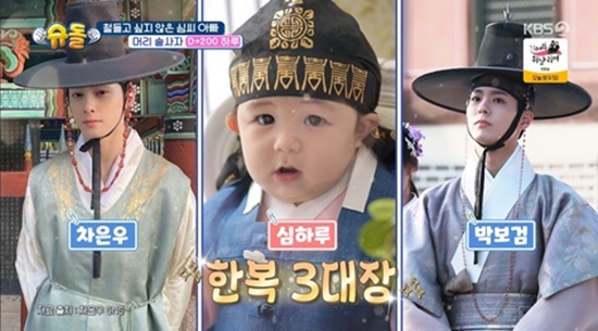 (엑스포츠뉴스문채영기자)심형탁의아들하루가200일을맞이했다.3일방송된KBS22TV'슈퍼맨이돌아왔다'(이하'슈돌')588회는'까꿍까꿍~우리아기!'편으로,3MC박수홍,최지우,안영미와슈퍼맨심형탁,슈퍼맘김윤지가함께했다.이날방송에는심형탁의아들하루가200일을맞이한모습이그려졌다.도라에몽포스터에발도장찍기,200일하루의손과발을본뜬조형물만들기,200일기념특별사진촬영등200일을맞이한아들하루의현재를남기기위한아빠심형탁의고군분투가그려졌다.200일기념촬영에나선하루는박보검,차은우를이을꽃도령으로떠올랐다.한복을입은하루의사진에심형탁은"와누구아들이야"라며감탄을금치못했고,스튜디오에서최지우역시"아역배우인하루가자라서박보검,차은우가된것같다"라며박보검,차은우를이을한복비주얼3대장임을인정했다.또한하루는일본의전통혼례복인하카마,닮은꼴캐릭터몬치치,드래곤볼의베지터까지아빠심형탁의로망이담긴특별한착장과설정컷을포토제닉한포즈와표정으로소화해보는이들의엄마미소를자아냈다.무엇보다이날자동저장을부르는하루의200일사진을만든일등공신은아빠심형탁이었다.심형탁은바로무릎을꿇고하루의기분을살피며즉흥공연부터비눗방울놀이,까꿍점프등열정적으로움직였다.심형탁은몬치치로변신한하루의모습에"너무예뻐심장이멈출것같아"라며아들덕후의면모를드러냈다.사랑스러운하루의모습에사진작가는"비주얼도상위1%,컨디션도1%"라며극찬을이어갔다.심형탁은"우리하루건강하게200일이되어줘서아빠는너무행복해"라고말한후"하루야아빠엄마한테와줘서너무고마워"라고하루를향한사랑을쏟아내공감을자아냈다.이어서대가족의공동육아시스템으로시선을사로잡은김윤지와딸엘라,가족들의일상이공개됐다.특히엘라의돌잔치답례품을가족모두가모여앉아일사천리로포장해눈을사로잡았다.또한엘라가스스로첫걸음마를내디뎌엄마김윤지와할머니김영임을깜짝놀라게했다.김윤지가"본인의의지로이렇게많이걷는건처음이었다"라고밝히자최지우는"정말귀한영상이다"라며감탄을터트렸다.엘라가걸음마를마치고자리에앉자가족들의환호와물개박수가터져나왔고,김윤지는"다섯발자국이나걸었는데?"라며엄지를추켜세웠다.이날방송에는엘라의돌잔치가공개돼관심을모았다.최병서,이용식,김학래등할아버지이상해의후배들을비롯해축구선수지동원까지엘라의생일을축하해주기위해한자리에모였다.이상해는엘라의돌잔치에서절친이자엘라의외할아버지인김윤지의아빠를떠올리며눈물을글썽였고,김윤지도돌아가신아버지를떠올리며"아빠가지켜보고있다는걸알기때문에열심히바르게키워보도록할게"라며눈물지어먹먹하게했다.이어돌잔치의백미인'돌잡이'가펼쳐졌다.할머니는청진기,외할머니는마이크,엄마김윤지는연필,아빠는골프공을잡았으면좋겠다고밝혀각자원하는돌잡이템이다르다는게드러났고,치열한경쟁속에서엘라가무엇을선택할지시선이한곳에쏠렸다.엘라는판사봉을집는듯하더니골프공을잡아아빠의환호성을유발했다.하지만할머니김영임의요청에돌잡이재도전이펼쳐져웃음을유발했고,엘라는두번째돌잡이에서도골프공을꽉잡아폭소를터지게했다.한편'슈퍼맨이돌아왔다'는매주수요일오후8시30분에방송된다.사진=KBS2TV문채영기자[email protected]©엑스포츠뉴스.무단전재및재배포금지.
