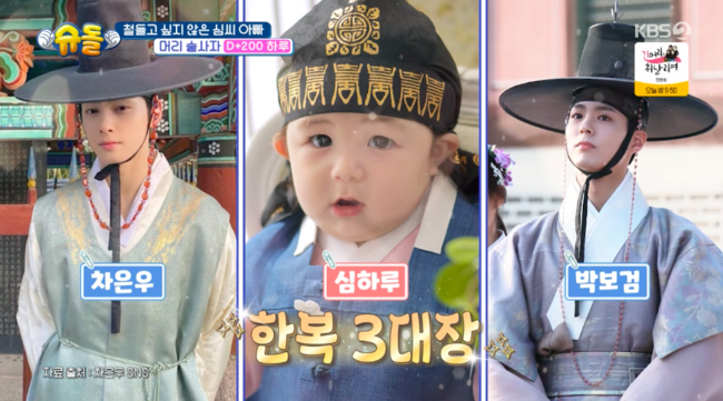 [OSEN=박하영기자]‘슈퍼맨이돌아왔다’심형탁아들하루가박보검,차은우못지않는비주얼을뽐냈다.3일방송된KBS2TV예능‘슈퍼맨이돌아왔다’(이하‘슈돌’)에서는심형탁이생후200일이된아들하루와의일상이그려졌다.이날심형탁은생후200일을맞이한하루와함께사진스튜디오를찾았다.그는하루하루다르게성장하고있는하루를담아내기위해서라고.100일사진을찍었던스튜디오를다시방문한심형탁은“많이크지않았냐.너무예쁘지않냐”라며“내자랑이다.나자랑할거이거밖에없다”라며아들자랑을했다.본격적으로촬영이시작되고,심형탁은첫번째의상으로한복디자이너박술녀가특별히선물한한복을선보였다.그는“박술녀선생님께서저희한복을100일때도해주셨다.그런데한복못찍었다.너무울어서.근데지금100일한복이안맞는다.그이야기를했더니.선생님께서새롭게만들어주겠다고하시더라.너무감사하다”라고전했다.그러나낯선환경탓일까.하루는어리둥절한표정을짓다이내울먹였다.당황한심형탁은잘때불러주던노래를불러줬고,하루는바로안정감을되찾았다.무엇보다하루는복건에버선까지풀장착하며박보검과차은우를잇는꽃도령으로완벽변신해눈길을끌었다.최지우는“우리하루도한외모한다”라고했고,심형탁은“저렇게만컸으면좋겠다”라고웃었다.그리고심형탁의노력으로완성된첫번째사진.이를본심형탁은“와누구아들이야.너무예뻐진짜예뻐”라며애정을드러냈다.나아가사진작가는하루를향해"비주얼상위1%"라며극찬해눈길을끌었다./mint1023/@osen.co.kr[사진]‘슈퍼맨이돌아왔다’방송화면캡처Copyright©OSEN.무단전재및재배포금지.
