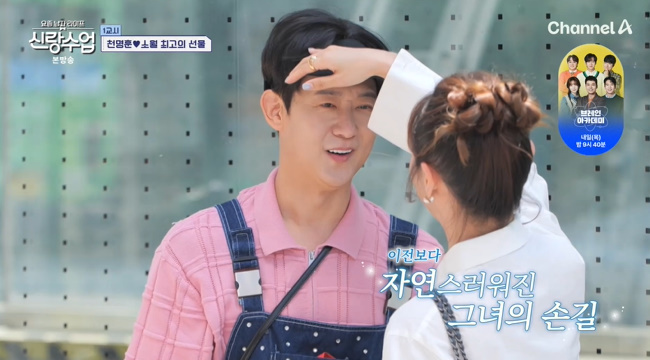 [스타뉴스|정은채기자]/사진='신랑수업'방송화면캡쳐가수천명훈이'짝사랑녀'소월에고가의그림을선물했다.3일방송된채널A예능프로그램'요즘남자라이프-신랑수업'(이하'신랑수업')179회에서는가수천명훈이미스차이나출신소월과의데이트에서진심가득한'직진'면모를드러냈다.두사람은백순대를앞에두고서로의연애사를털어놓았다.천명훈이첫사랑을물었고,소월은22살대학생때였다고답했다.연애기간을집요하게묻는질문에는2년이라고했다.반면총연애횟수를묻자소월은"과거는과거다"라며말을아꼈다.소월은자신의연애성향도솔직히전했다."마음이쉽게열리지않는스타일이다.그런데열리면푹빠진다.헤어질때상처를너무많이받는다.그래서마음을쉽게못준다"라고털어놓으며,쉽게다가서지못하는이유를설명했다.천명훈은조심스럽게자신의표현방식이부담이었는지확인했다.이에소월은"행동이너무부담스럽다.오빠가계속'오늘부터1일'이라는게장난처럼보인다"라고선을그었다.그럼에도천명훈은물러서지않고"소월이가오해하는것같은데널만나면서한모든게다진심이었다.난언제나직진"이라며다시한번확고한마음을밝혔다.소월은분위기를돌리듯"대리기사님왓어?"라고화제를전환해보는이들의웃음을자아냈다.데이트가끝난뒤,천명훈은소월을집까지바래다주며깜짝선물을건넸다.이전데이트에서소월이갖고싶어했던'그그림'이었다.영수증까지공개하자소월은"오빠큰돈썼네,감사합니다.잘둘게요"라며지금까지와는결이다른,가장밝고애교스러운반응을보였다.정은채기자[email protected]©스타뉴스&starnewskorea.com,무단전재및재배포금지
