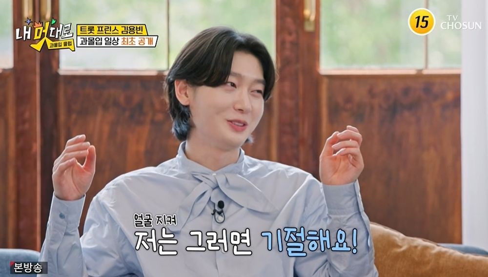 내멋대로-과몰입클럽/사진=TVCHOSUN캡처[스포츠투데이정예원기자]'내멋대로-과몰입클럽'김용빈이자기관리끝판왕의면모를보였다.3일첫방송된TVCHOSUN예능'내멋대로-과몰입클럽'(이하'과몰입클럽')에는'미스터트롯3'진(眞)김용빈이출연했다.내멋대로-과몰입클럽/사진=TVCHOSUN캡처이날'트롯프린스'김용빈은"트로트는할머니덕분에접했다.자연스럽게스며들었다"고밝혔다.이내김용빈은자기관리에과몰입한일상을보여줬다.그는기상후세수를한뒤토너4개,앰플,비타민C,모공축소크림,트러블연고,아이크림,영양크림,선크림등수많은화장품을얼굴에발랐다.이어"미세먼지가많은날엔밖에잘안나간다.담배는잡아본적도없다.13살에데뷔를해서그렇다"며"클럽엔가본적도없다.그런걸하면큰일나는줄알았다.배달음식은건강에안좋아1년에5번도안먹는것같다"고밝혔다.또김용빈은"크리스영과가족처럼친하다.반려견도거의공동육아한다"며크리스영어머니에게전화를걸어된장찌개레시피를물었다.그러면서"요리를할때마다어머니께연락해여쭤본다.잘알려주신다"고덧붙였다.[스포츠투데이정예원기자[email protected]]Copyright©스포츠투데이.무단전재및재배포금지.
