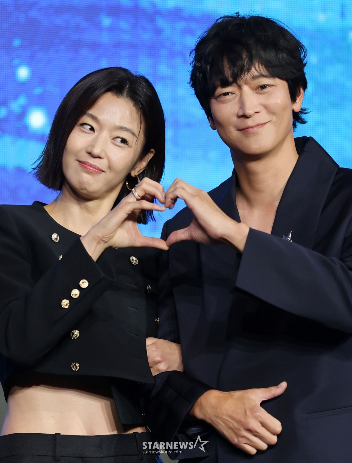 북극성제작발표회/사진=권광일기자[스포츠투데이송오정기자]배우전지현·강동원이'으른멜로'합을맞추게된소감을밝혔다.2일오전포시즌스호텔서울에서디즈니+시리즈'북극성'제작발표회가진행됐다.현장에는전지현,강동원,이미숙,박해준,김해숙,유재명,오정세,이상희,주종혁배우를비롯해김희원감독,허명행감독이참석했다.'북극성'(극본정서경·연출김희원허명행)은유엔대사로서국제적명성을쌓아온‘문주’(전지현)가대통령후보피격사건의배후를쫓는가운데,그녀를지켜야만하는국적불명의특수요원‘산호’(강동원)와함께한반도를위협하는거대한진실을마주하는이야기를담고있다.전지현,강동원은이번작품에서진한'으른멜로'(어른멜로)로합을맞추게됐다.전지현은"일단문주와산호는전혀다른세계에서살던인물이다.서로알수없는것에끌리며마주보게된다.서로를알아갈수록나자신을돌아보게되는관계다.드라마가진행되며그런게재미있게발전된다.중점적으로봐주시면더재미있으실것"이라고관전포인트를귀띔했다.그러면서"저희가사실은모니터를하면서서로얘기한건데,'이렇게어른연기를한적있었나?'했다.화면에서봤을땐그런부분이자연스럽고,'느좋'같은느낌이었다.(웃음)너무좋더라"고말해현장을웃음바다로만들었다.이때강동원에게박경림이"동공이흔들리신거같다"라며'느좋'을아시는거맞냐고장난스럽게질문을던졌다.그러자강동원은"(사투리톤으로)느무좋다?"라고말해또다시폭소를자아내기도.이어전지현과멜로작업한것에대해강동원은"어릴때만났다면완전다른느낌이었을거같은데,모니터를보면서농담반진담반으로했던얘기는'뭘좀아는거같다'서로좀아는남녀가서로를바라보는느낌이었다.잘몰랐던것도많았는데이제는좀뭘좀아는거같다란생각이강하게들었다"라고강조했다.한편디즈니+오리지널시리즈'북극성'은이달10일1~3편이첫공개된다.[스포츠투데이송오정기자[email protected]]Copyright©스포츠투데이.무단전재및재배포금지.