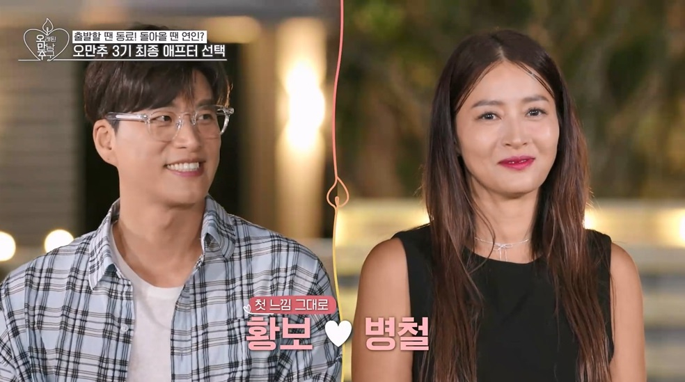 홍자·박광재,황보·송병철이'오래된만남추구'3기최종커플이됐다.iMBC연예뉴스사진지난1일KBSJoy·KBS2·GTV에서동시종영한'오래된만남추구'(이하'오만추')에서는3기인연여행의최종선택이그려졌다.지난2기에서한커플도탄생하지않았던것과달리,이번3기에서는두커플이성사돼눈길을끌었다.박광재는지난2기출연당시자신의마음을끝까지표현하지못했던것에깊은후회를드러냈다.그는솔직하지못했던자신의선택을아쉬워하면서"3기에나와선후회하지않으려고노력했다"고말했다.박광재는홍자를향해인연의촛불을밝히며"첫인상부터아주마음에들었고,싫어할만한부분이단하나도없었다"고고백했다.홍자역시박광재를선택하며화답했다.홍자는"함께있을때편안하고시간이빨리가는것같았다"며박광재가처음부터끌렸다고밝혔다.송병철은'오만추'를통해취미를같이하고싶은사람을찾으려했다고전했다.그는황보를선택하며"함께이야기나눴을때편했고,같이하면재밌는일들이많이있을거같다"며선택의이유를설명했다.황보는처음설렘을준송병철과천천히스며든이규한사이에서고민했다.결국황보는송병철을선택했고,"첫만남때의감정을잊어선안된다고생각한다.더알아가고싶은사람은병철"이라고강조했다.반면예상을뒤엎는결정들도이어졌다.솔비의선택을받은이규한은인연의촛불을밝히지않았다.그는"내마음의공간이텅빈상태로'오만추'에들어왔는데,3기멤버들이텅빈마음을가득채워줬다"고했다.이규한은자신의선택으로인해멤버들이불필요한상처를받을수도있다는부담에"친구들을지키고싶다"라며촛불을밝히지않은이유를설명했다.이켠은촛불을켜지않았지만,홍자에대한마음을털어놨다.그는"내가설레고많이떨었던데이트는홍자와의데이트였다"고고백했다.하지만그의선택에앞서박광재와홍자가커플이되면서이켠은최종선택을포기했다.반면장소연은박광재가홍자와연결됐음에도그의촛불을밝혔다.장소연은"친구가되는것도내겐의미가크다"며박광재와친구로서의인연을이어가고싶다는뜻을전했다.커플이된홍자와박광재,황보와송병철의애프터데이트도공개됐다.박광재는홍자가출연중인트로트뮤지컬공연장을찾았다.박광재는홍자의대기실을찾아가꽃다발과선물을전달하며그를응원했다.공연이끝난뒤두사람은삼겹살'맛집'에서다시만났고,박광재는"내눈엔홍자만보였다"고애정을드러냈다.이어홍자의'최애'장소동묘에함께가보고싶다면서매니저를자처하겠다고다정하게말해보는이들의미소를자아내게했다.황보와송병철은실내낚시터에서데이트를즐겼다.베테랑낚시꾼송병철과낚시초보황보의연인'케미'가시청자들의미소를짓게했고,짜릿한손맛에푹빠진황보는송병철에게"오빠,다음주에또하자"라며자연스럽게'커플상황극'을시도해웃음을불러일으켰다.낚시를끝낸두사람은즉석사진관에서추억을남기며다음데이트까지약속,'현실커플'로발전할가능성을보여줬다.한편'오만추'는무인도에단둘이떨어져도아무일없을것같았던연예계싱글들이일상속스쳐지나간인연을돌아보며미처알지못했던진짜인연을찾아가는연애리얼리티프로그램으로시즌1부터시즌3까지대중의사랑을받았다.iMBC연예백승훈|사진출처KBSJoy-KBS2Copyright©MBC연예.무단전재및재배포,AI학습금지.