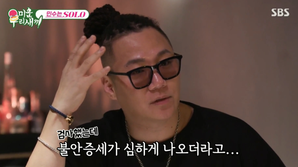 (엑스포츠뉴스한채은기자)윤민수가불안증세와불면증을겪고있다고밝혔다.31일방송된SBS'미운우리새끼'에서는윤민수가이혼후'싱글라이프'를보내는모습을공개했다.이날윤민수는2013년'아빠!어디가?'를통해인연을맺어절친이된이종혁과만남을가졌다.두사람은미용실에서헤어스타일을바꾼후술집에방문해더진솔한대화를이어갔다.이종혁은윤민수에게"너들리는이야기로는심리상담받았다며.정신과같은데간거냐.언제"라며궁금증을쏟아냈다.윤민수는"옛날에가보고.작년에안좋은일도있고"라며"불안증세가심하게나오더라고"라며시청자들에게충격을주었다.또"약받아서먹고있다.잠을잘못자니까잠오는약도좀받고"라며불안증세와함께불면증에시달리고있다고밝혔다.이어"나는어렸을때부터가장이었다.18살,19살때부터"라며소년가장으로일해왔던경험에대해털어놓았다.윤민수는"형도비슷할거다.나이가들면서불안하고언제까지(일을)할수있을까.앞으로책임져야할부분이많다"라며진솔한속마음을드러내기도했다.현재느끼고있는책임감과부담감에대해털어놓은윤민수는"좀내려놓으려한다.일을막벌이기보다는이제는온전히나를위해에너지를써야겠다"고앞으로의계획을전했다.이종혁은"내려놓는건좋은것같다.나도오늘좀내려놨다.평생처음하는머리"라며농담을던져무거웠던분위기를전환해웃음을자아냈다.이날윤민수는자신이겪고있는불안증세외에도이혼후에느꼈던결혼생활의아쉬움에대해말하기도했다.그는"지금생각해보면적어도일주일에한번은가족들끼리모여서밥먹고대화를나눠야한다.근데나는그걸못한게후회스러운게많다.모임할때나밥을먹지,가족끼리밥을먹으면서대화를한적이별로없다"라며가족들과식사를자주하지않은것에대한후회를털어놨다.또"그런것만했어도(전아내와)이렇게까지되지않지않았을까"라며이혼후깨달았던점에대해솔직하게밝혀눈길을끌었다.사진=SBS방송화면한채은기자[email protected]©엑스포츠뉴스.무단전재및재배포금지.