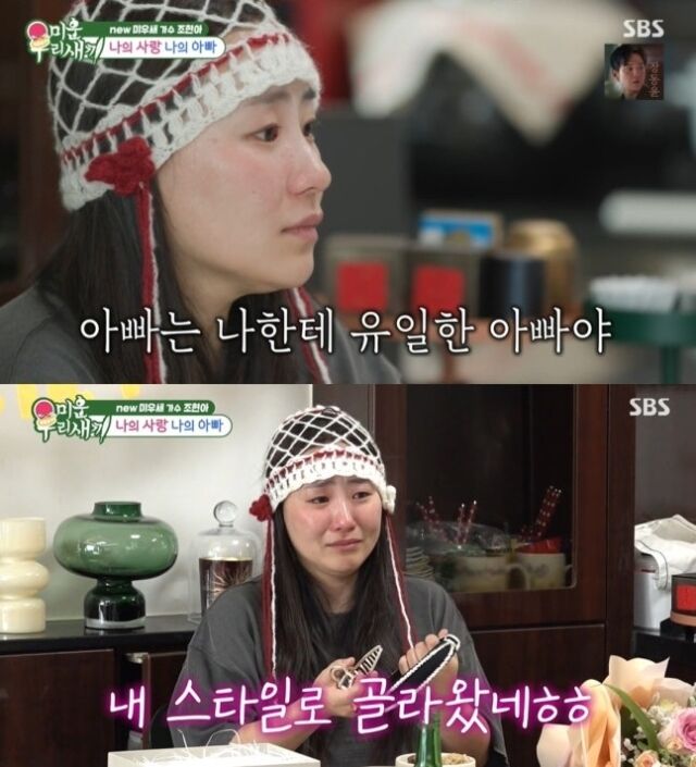 조현아[마이데일리=김진석기자]눈물없이들을수없는부녀의이야기다.지난달31일방송된SBS'미운우리새끼'에는어반자카파조현아가출연했다.이날조현아는5세때친아버지를하늘로보내고약30년간함께생활하고있는새아버지와근황을전했다.식사도중조현아는"내가어렸을때엄마가갑자기아빠랑나타났을때기억나냐"며"방학때친척집에있는데엄마가데리러왔는데아빠랑온거다.근데아빠는옆집아저씨였지않았냐.그래서'왜같이왔지?'그러고있었다"고말했다.이어"사춘기오고나선가부터아빠한테심하게했다.아빠라고못불러서.그때는힘들더라.어리니까아빠가싫고그런게아니라내가엄마를뺏겼다는게어렸을때느낌"이라고미안한마음을드러냈다.아버지는"몇년지나서'아빠'소리를듣고'나를받아들였구나'라는생각이들었다"고밝혔고이어'내가아빠라고할때어땠냐'고조현아가묻자"가슴이벅찼다.'내가두딸을한꺼번에얻었구나'이렇게생각했다"고얘기했다.조현아의아버지는어머니가재즈와가수를반대할때도유일하게지지해줬던사람이다.조현아는"내가가장존경하는아빠의모습은정말성실하다.항상나를데려다주고데리러오고챙겨주고나한테여태까지한번도화낸적없고그런부분에서아빠가존경스럽고대단하다"고말했다.이어'딸을공짜로얻었으니그런희생이야당연한것이다'는말에눈물을흘리며"나한테서운한거없었냐.못되게해서"고물었다.아버지는"없다.하나도.서운할게뭐가있냐.행복한거지"라며애정을드러내보는이들을모두눈물짓게만들었다.Copyright©마이데일리.무단전재및재배포금지.