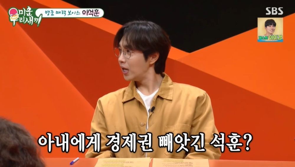 SBS‘미운우리새끼’캡처SBS‘미운우리새끼’캡처[뉴스엔유경상기자]이석훈이아내에게경제권을넘겼지만용돈을받는건아니라고말했다.8월31일방송된SBS‘미운우리새끼’에서는가수이석훈이출연했다.서장훈은이석훈에게“아내에게꽉잡혀사는게경제권을다뺏겼다고한다.수입,재방료,저작권료전부다아내가관리를한다고?”라고질문했다.이석훈은“뺏긴게아니고부탁했다.아내가저보다현명하고수계산이빠르다.아내가해주는게제가편하다.아내가알아서해주니까.제가용돈받는건아니고쓸걸쓴다”고말했다.서장훈이“아내가모르는비상금이있다?”고묻자이석훈은“없다”며“(아내가)공인인증서,모든걸다알고있다”고말했다.그런이석훈에게신동엽은“왜행사도투명하게하는데‘미우새’출연료는현찰로달라고했냐”고농담해웃음을자아냈다.(사진=SBS‘미운우리새끼’캡처)뉴스엔유경상yooks@기사제보및보도자료[email protected]ⓒ뉴스엔.무단전재&재배포금지Copyright©뉴스엔.무단전재및재배포금지.
