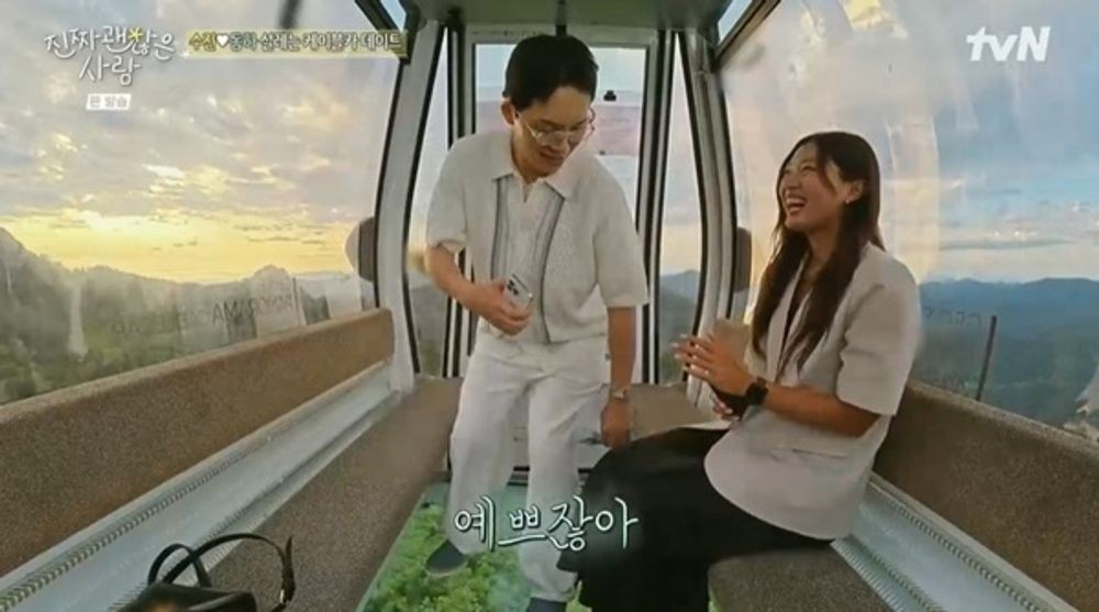 [TV리포트=양원모기자]신동하가강수진에게구애를펼쳤다.31일저녁tvN'진짜괜찮은사람'에서는허영지친구신동하와김영광친구강수진의데이트가공개됐다.식사후케이블카를탄신동하와강수진은서로사진을찍어주며교감했다.강수진은사진속자신을보며"너무예쁜척한다"고투덜거렸다.그러자신동하는"예쁘잖아"라며사심을드러냈다.신동하의적극적인애정표현에출연진들은"끝났다"고반응했다.조세호는"숨쉬듯자연스럽다"고평가했고,허영지도"너무적극적이다"며친구의새로운모습에놀랐다.김영광은"강수진이모솔이라(연애)경험을못해봤는데지금푹빠진것같다"고말했다.데이트를마치고숙소로돌아온강수진은신동하에게물티슈를건넸다.강수진은이모습을지켜보던오현진에게"우리가밖에서바람을맞았는데찝찝하더라.근데씻지도못하잖아"라고설명했다.오현진은물끄러미두사람을바라보며복잡미묘한표정을지었다.그는제작진과의인터뷰에서"그둘의분위기를봤을때뭔가가있다.나와는다른분위기가있다고느껴졌다"며"나보다훨씬더둘이더잘어울리고잘맞는다고생각한다"는말과함께착잡한표정을지었다.이미주는"아직모르잖아요"라며오현진을위로했다.이날방송에선8명의출연자가서로의나이와직업을공개했다.강수진은신동하가37살의사라는사실을알고깜짝놀랐다.강수진은인터뷰에서"충격이었다.어떻게보면현진오빠랑한살차이밖에안난다"며"현진오빠는저랑열살차이가나는데생각보다많아서조금놀라긴했다"고밝혔다.조세호는"수진씨가허용할수있는나이차이가6살이라고했는데,동하씨랑은나이차가9살"이라고지적했다.이에허영지는"나이를알면생각이바뀔수도있지않나"라고예측했지만,김영광은"이정도면나이도허락할것같다"며강수진의반응을짐작했다.강소라는"축구쪽이면남성도많지않냐"며강수진이모태솔로인걸이해할수없다고했다.그러자김영광은"여자축구로서성공하기위해서매진하다보니까아마그런쪽에시간을투자못한것같다"며"제가조금러벗으로서운명의커플이나타나길바라는마음으로나왔다"고답했다.양원모기자[email protected]/사진=tvN'진짜괜찮은사람'방송캡처Copyright©TV리포트.무단전재및재배포금지
