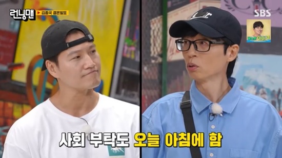 김종국,유재석/SBS'런닝맨'[마이데일리=김도형기자]김종국이결혼을알리면서사회까지부탁해유재석이당혹감을감추지못했다.31일방송된SBS예능프로그램'런닝맨'에서는가수김종국의결혼발표현장이전파를탔다.앞서김종국은지난18일,'런닝맨'녹화시작과동시에멤버들에게직접결혼소식을전했다.이날김종국은유재석에게결혼소식을알렸다.유재석도놀란듯멤버들에게"(김종국결혼소식을)들었냐?"고물었다.유재석은"오늘기사낸다잖아.아니뭘그렇게꽁꽁숨겨"라고하기도.하하는믿기지않는듯바삐움직이는호흡만전해졌다.제작진은'지금들은사람도아까들은사람도대혼란'이라며결혼을철저히숨긴김종국의의지에놀라움을표시했다.김종국결혼/SBS'런닝맨'김종국은결혼소식을전하면서유재석에게사회까지부탁했다.결혼18일전.유재석은당일녹화가예정돼있었다.그럼에도녹화를앞당겨서김종국의결혼을축하해줄예정.유재석은"그날저도녹화가있다.종국이가올해30주년콘서트로'뭘하나보다'했는데나한테사회를봐달라더라.녹화스케줄을어떻게든당겨보겠다"고했다.이어"내가격조있게(사회를)보니까걱정하지마라"고덧붙였다.Copyright©마이데일리.무단전재및재배포금지.