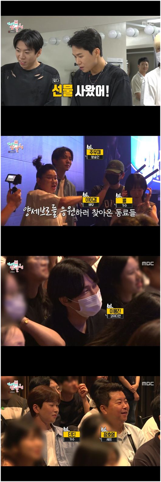 [OSEN=오세진기자]‘전지적참견시점’양세형과양세찬형제의'양세브로쇼'가공개됐다.30일방영된MBC예능‘전지적참견시점’(이하‘전참시’)에서는양세형,양세찬형제의개그쇼인양세브로쇼가공개됐다.일반개그쇼와조금달랐던건구성이거의춤과노래공연에가까웠던것이다.스타일리스트는“오늘은양세형과양세찬의양세브로쇼라는공연이있는날이다.개그쇼니까,의상이많이필요할까싶었는데구성안받아보니까춤추고노래하는게많더라.그래서아이돌의상처럼준비했다”라고말했다.아니나다를까,화려한바이크재킷에비즈까지붙어있는의상은무대에서빛이났다.게다가관객석에는눈에익숙한이들이등장했다.이영자,심진화,정호영셰프,딘딘,이이경,별,신기루까지온것이다.특히이영자는형제들을위해맞춤옷선물을해양브라더스를감동시켰다.양세형은“이건진짜이영자선배가우릴잘알아서,우릴위해서손수준비해주신의상이다”라며감동했고,양세찬은"정말제가좋아하는핏이다"라고말했다.이어관객매진에이어기자들의열띤질문시간을가지기도했다./[email protected][사진출처]MBC예능‘전지적참견시점’방송화면캡처Copyright©OSEN.무단전재및재배포금지.