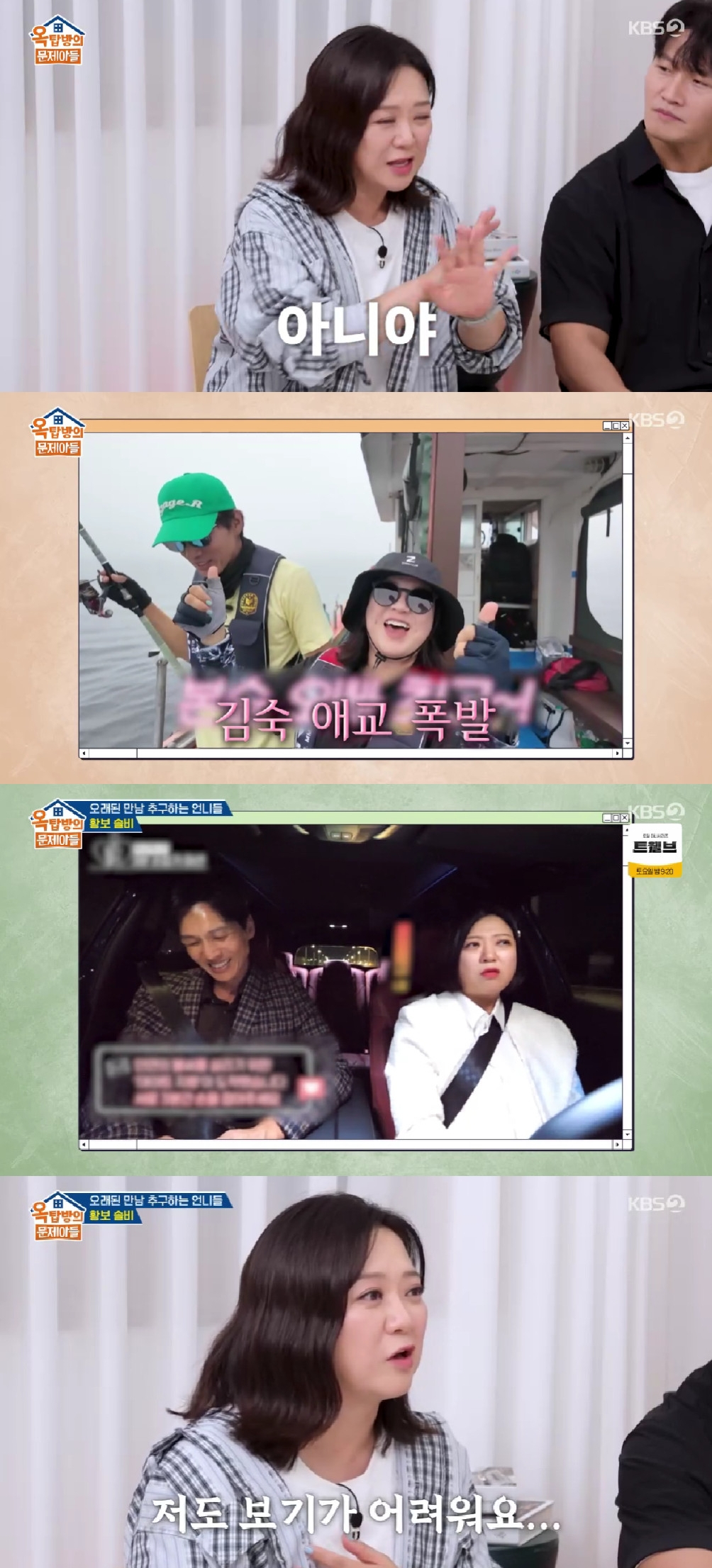 [스타뉴스|김나연기자]김숙/사진=KBS2TV옥탑방의문제아들방송인송은이가김숙과구본승의관계를증언했다.28일방송된KBS2TV'옥탑방의문제아들'에서는연예계연애리얼리티'오래된만남추구3'(이하오만추3)에서활약중인솔비와황보가출연했다.이날김종국은김숙과구본승의결혼을언급했고,김숙은"결혼식은박명수오빠가본인좋아하는날짜를얘기한거다"라고했다.이에주우재는"얼마전에구본승형님이랑단둘이보트타시지않았냐"고선상데이트를언급했고,김숙은"참돔얻어먹어야해서애교를좀부리긴했다"고말했다.이어'오만추1'에출연했던김숙은"첫데이트때심야드라이브를한다.차안에제작진이없고,단둘만있다.첫번째미션에서3분동안손잡아야한다.여기서커플이될지말지느낌이온다"며"(구)본승오빠가'내가골프랑낚시를해서손이너무거칠어'라고하더라.'오빠전캠핑해서더거칠어요'라고했다"고회상했다.김숙의모습을본홍진경은"저언니가본승오빠얘기할때입꼬리가계속올라간다"고했고,송은이는"내가볼때본승이는마음접었는데혼자좋아하는것같다"고덧붙였다.또한황보는구본승에대한팬심을고백하며"중학생때부터TV로봐왔던연예인이고,SNS도없던시절등굣길에오빠의드라마촬영소식이소문났다.직접가서사인받고,지각했던경험도있다.내우상이었는데연예인이된후에도한번도못봤다"고했다.김나연기자[email protected]©스타뉴스&starnewskorea.com,무단전재및재배포금지