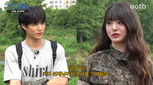 유튜브영상캡처[OSEN=장우영기자]그룹아이브장원영이카이와동반입대했다.28일유튜브채널‘ootbSTUDIO’에는‘아이브장원영군입대현장공개’라는제목으로‘전과자’97번째에피소드가공개됐다.카이는‘동반입대’라는주제에경악하며“방학에입대하는사람이어딨냐.200만도안됐는데왜입대하냐”고불만을터뜨렸다.서경대학교의군사학과로전과하게된카이는동반입대할사람이고등학교동문이라고하자“서울공연예술고등학교?세븐틴,NCT마크나왔고엑소,방탄소년단도나왔다.그분이동반입대하고싶다고했냐”고물었다.제작진은“저희도다른거하려고했는데그분이군대가고싶다고했다”고설명했다.유튜브영상캡처카이와동반입대할주인공은다름아닌아이브장원영이었다.장원영은군복을입고등장,카이는“왜이분이동반입대하고싶다고”라며말을잇지못했다.장원영은“동반입대하는거괜찮지않냐.200만공약이군대간다고한거라고해서못기다리겠다고해서나왔다.과들을봤는데너무많이가서같이가게되면어딜가야할까생각해서군대를가버릴까했다”고설명했다.이에카이는“이게보통일이아니다.오늘각오를좀하셔야할것같다”고경고했고,장원영은“아직까지는마음이꽃밭이다”라며다가올위험에도해맑게웃었다./[email protected]©OSEN.무단전재및재배포금지.