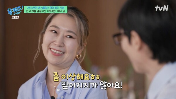 ‘유퀴즈온더블럭’.사진ItvN‘유퀴즈온더블럭’방송캡처매기강감독이‘케이팝데몬헌터스’의인기를언급했다.27일방송된tvN‘유퀴즈온더블럭’(이하‘유퀴즈’)에는넷플릭스‘케이팝데몬헌터스’의매기강감독이게스트로출연했다.이날매기강감독은넷플릭스‘케이팝데몬헌터스’의글로벌인기에대해“좀이상하다.믿어지지않는다.나는영화하나가이렇게까지인기가있을수있다는것도몰랐다”고웃었다.이어“이자리도믿어지지않는다.내가‘유퀴즈’를엄청많이봤고내가이런쇼에나온다는것자체가신기하다”고덧붙였다.‘케이팝데몬헌터스’OST인‘골든’(Golden),‘소다팝’(SodaPop)등은미국빌보드차트상위권을점령한상황.매기강감독은“우리가노래를만들면서케이팝팬들이이노래를케이팝으로받아들이고헌트릭스랑사자보이즈를아이돌그룹으로받아들였으면했다.그런데우리노래가빌보드까지올라간다는생각은전혀안했다.그게너무신기하다.빌보드에서헌트릭스랑사자보이즈가싸우는것도신기하다”고말했다.한편‘유퀴즈온더블럭’은매주수요일오후8시45분방송된다.[이세빈스타투데이객원기자]Copyright©스타투데이.무단전재,재배포및AI학습이용금지