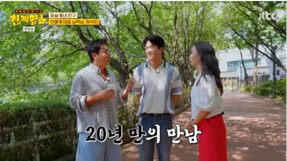 사진제공ㅣJTBC배우김희선과하석진이20년만에재회해훈훈한시간을만들었다.26일방송된JTBC예능프로그램‘한끼합쇼’에는배우하석진이게스트로등장했다.이날석촌호수를걷던김희선과탁재훈앞에하석진이나타나자김희선은놀란듯반가운인사를건네며“20년만에만난다”고감격을드러냈다.김희선은“하석진데뷔작을같이했다.내가가수역할을맡았고하석진은내매니저역할이었다.한차안에서함께있는신이많아자연스럽게이야기를나눴다”며추억을회상했다.이에하석진은“누나얼굴이그대로다.너무신기하다.이후로는방송에서만뵀다”며변함없는김희선의외모를칭찬했다.옆에서지켜보던탁재훈은“이프로그램은‘한끼합쇼’라기보다이산가족상봉같다”며웃음을자아냈다.사진제공ㅣJTBC하석진은근황에대해“드라마촬영중이고내년에는사극도공개될예정이다.가을에는영화‘전력질주’도개봉한다”고전했다.그는잠실에서학창시절을보냈다며“가끔러닝도한다.예전부터이동네는교육열이높고인심이좋아한끼도전도잘될것같다”고말했다.한편김희선은앞서배우이진욱과도19년만에재회한바있어연달아오래된인연들과만나는특별한시간을이어가고있다.이수진기자[email protected]©스포츠동아.무단전재및재배포금지.