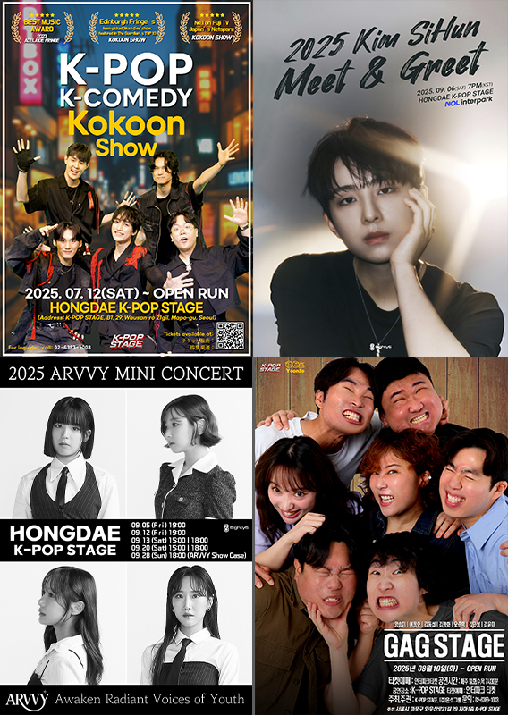 윤소그룹제공‘K팝의심장’홍대K팝스테이지가가을을뜨겁게물들인다.윤소그룹은26일서울마포구서교동에위치한복합공연장,홍대K팝스테이지의9월공연라인업을공개했다.세계무대에서극찬을받은‘코쿤쇼’를비롯해‘프로젝트7’출신김시훈,차세대걸그룹아르비,윤소그룹의새로운개그팀개그스테이지까지장르의경계를넓힌무대들이K팝스테이지의9월을가득채운다.세계유수의페스티벌에서극찬을받은코쿤(KOKOON)은총11회‘코쿤쇼(KOKOONSHOW)’로무대에오른다.코쿤은익숙한K팝리듬위에서펼쳐지는댄스,오리지널퍼포먼스,누구나이해하기쉬운코미디코드로해외관객들에게인정을받았으며,세계를사로잡은실력을K팝스테이지위에서뽐낼예정이다.JTBC아이돌오디션‘프로젝트7’출신아티스트김시훈은9월6일‘밋앤그릿(MEET&GREET)’을연다.‘밋앤그릿’은단독공연과팬소통을결합한무대로,실력파아티스트김시훈의개성과에너지,새로운도전을만날수있다.4인조신인걸그룹아르비(ARVVY)는오는9월28일미니콘서트를개최한다.미니콘서트전에는‘아르비데이’를개최하고,6번의공연을연다.지난5월‘K팝위크인홍대’를통해가능성을증명한아르비는차세대걸그룹다운패기와신선한무대로K팝팬들의눈도장을확실히찍겠다는계획이다.평일에는윤형빈소극장의전통을잇는개그팀개그스테이지가무대에오른다.웃음의선두주자‘윤소패밀리’가뭉친이번공연은콩트형공개코미디로,남녀노소모두한자리에모여웃음을나눌수있는특별한시간을선사한다.홍대K팝스테이지의기획자인개그맨윤형빈은“홍대K팝스테이지는아티스트와팬이가장가까운거리에서호흡할수있는열린무대”라며“9월에는다양한장르가어우러진무대들로관객들에게색다른경험을선사하겠다”고말했다.홍대K팝스테이지9월공연티켓은NOL티켓통해예매할수있으며,자세한일정과정보는공식채널에서확인가능하다.안병길기자[email protected]©스포츠경향.무단전재및재배포금지.