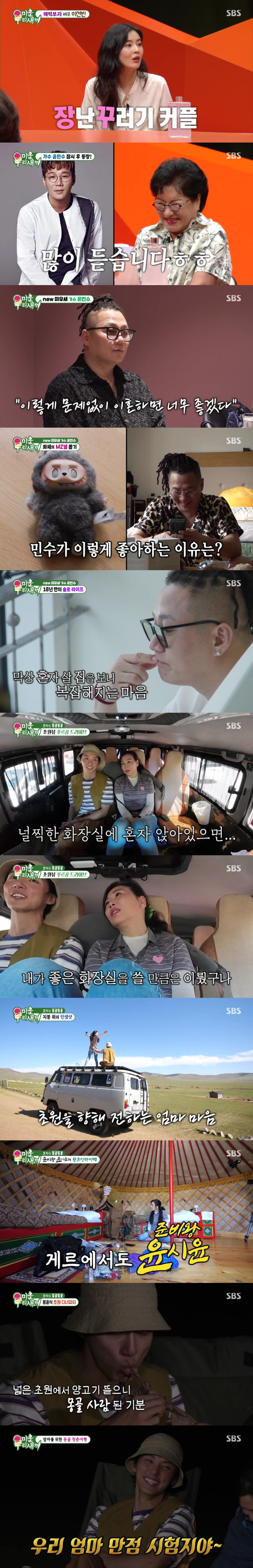 [SBS연예뉴스|강선애기자]이혼후에도전아내와한집에사는가수윤민수가새로운'미우새아들'로합류해일상을공개했다.닐슨코리아집계기준지난24일방송한SBS'미운우리새끼'(이하'미우새')는2049시청률2.4%로일요예능1위를기록했고,수도권가구시청률은10.9%로주간예능1위를차지했다.이날방송에스페셜MC로등장한배우이선빈은충청도사투리도母벤져스에게능청스럽게인사를건네웃음을자아냈다.배우이광수와8년째공개연애중인이선빈은"결국에는성향과코드가중요한것같다.잘맞으면노력하지않아도장기연애할수있는것같다.저는개그코드가잘맞는편이다"라고장기연애비결을밝혔다.이어이선빈은배우김혜수에대한미담을소개했다.그는"제가김혜수선배님과같은작품을하는게저희어머니꿈이었다.몸싸움신에서리허설을하는데'다치겠다'라며손톱을깎고저를배려해주셔서감동이었다"라며과거영화'굿바이싱글'에단역으로출연하며느꼈던감동을전했다.이날스튜디오에는가수윤민수의어머니가새롭게母벤져스멤버로합류했다.아들과많이닮은외모로모두를놀라게한민수母는"아들기사를매일검색하는데,이혼소식을기사로접했다.처음엔밖에나가사람만나기도싫었다"라고밝혔고,옆자리에앉은동건母는"예식장을못가겠더라"라고거들었다.이에서장훈은"이상민은결혼식사회도보는데요"라고맞받아쳐폭소를자아냈다.소울넘치는음색으로R&B대표가수이자국민귀염둥이윤후의아빠로예능에서활약하다지난해갑자기이혼소식을밝혀모두를놀라게했던가수윤민수가'New미우새'로합류했다.제작진과의사전인터뷰에서윤민수는"너무어릴때결혼해서그랬나,이혼후에는각자의삶을응원하며친구처럼지내고있다.얼마전엔가족여행도다녀왔다"라고근황을전했다.이어윤민수는"사실이혼후에도한집에같이지내고있다.집을정리해야해서"라고밝혀모두를놀라게했다.전처와는윤후에관련된필요한의사소통만한다는윤민수는"한두해같이산것도아니고,집에서마주쳐도그냥친구같고그렇다"라고쿨한모습을보였다.이어윤민수는트러플감자칩을넣은2인분의볶음밥을준비해아내몫을따로챙기는모습을보였다.윤민수는"배달음식도제가좋아하는것,가족들이좋아하는것같이시켜챙겨놓는다"라고밝혔다.혼밥을시작한윤민수는이혼관련프로그램을보며혼잣말까지하는모습으로폭소를자아냈다.이어윤민수는지인을만나"지금은방학이라후가같이있지만,나중에둘만있다고생각하면어떻게할지고민된다"라며상담했지만내년2~3월에나매매가될것같다는말에고민에빠졌다.상담후혼자살집을보러간윤민수는상념에잠겼다.한편함께어려운시절을극복했던윤시윤모자(母子)의가슴아픈과거이야기가공개되어많은사람들의마음을울렸던지난주에이어,윤시윤母子의몽골여행2탄이공개됐다.몽골빵집을찾은윤시윤은드라마'제빵왕김탁구'가몽골에서대박인기를끌며만들어진'김탁구빵'을보고놀라움에입을다물지못했다.이어두사람은초원투어전용차량푸르공을타고게르캠프로향했다.시윤母는"예전에단칸방살다화장실있는집으로이사갔을때꿈같아서내가변기통안고벽에기대서한참앉아있었다"라고이야기를꺼냈고,윤시윤은"일끝나고널찍한화장실에혼자앉아있으면'내가좋은화장실을쓸만큼은노력해서이뤘구나'하는생각이든다.그래서더화장실청소를하는걸지도모르겠다"라고대답해화장실집착(?)에대한이유를밝혔다.현대화된5성급게르에도착해만족한것도잠시,같은방에서자야한다는소식에시윤母가주저하는모습을보여폭소를자아냈다.윤시윤은바리바리싸온짐을모두꺼내칼각을맞춰정리하는변함없는모습을보였다.이어두사람은말린소똥으로불을피워몽골전통음식허르헉을만들었다.소똥을만지는윤시윤을본서장훈은"(저는)그냥한끼굶겠다"라고고개를내저었다.한편배움에대한아쉬움으로최근중학교과정을공부하고있다는엄마에게윤시윤은"대기실에서후배들불러놓고우리엄마만점시험지라고자랑했다"라며엄마에대한자랑스러움을한껏표현해모두를뭉클하게했다.한편이날방송마지막에는새아버지와단란하게지내는어반자카파조현아의특별한사연이공개되어관심을모았다.'미우새'는매주일요일밤9시에방송된다.강선애기자[email protected]©CopyrightⓒSBS.Allrightsreserved.무단전재,재배포및AI학습이용금지
