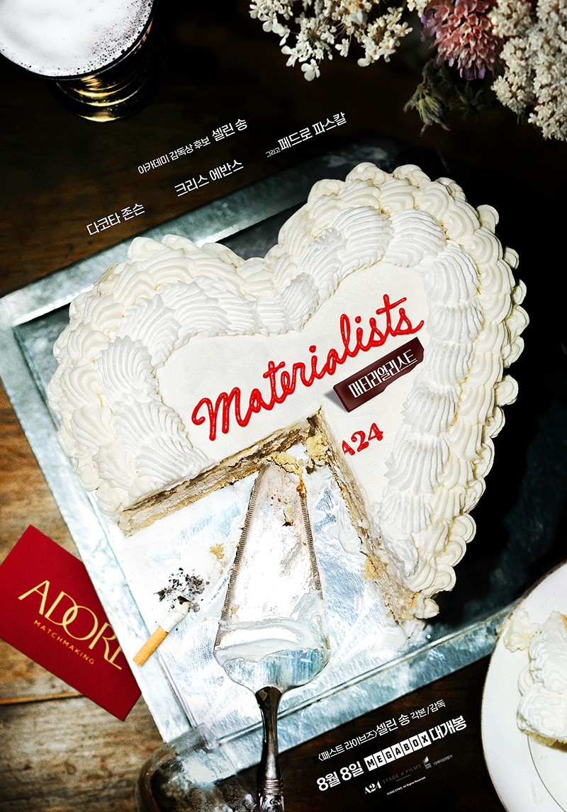 셀린송감독신작'머티리얼리스트'메인포스터[소니픽쳐스제공.재판매및DB금지](서울=연합뉴스)정래원기자=데뷔작'패스트라이브즈'로지난해미국아카데미시상식(오스카)작품상·각본상후보에올랐던셀린송감독이다음달신작로맨스로돌아온다.소니픽쳐스는셀린송감독의신작'머티리얼리스트'를8월8일개봉한다고9일밝혔다.'머티리얼리스트'는커플매니저루시(다코타존슨분)가능력과외모를다갖춘완벽한남자와가진것은없지만뜨겁게사랑했던옛연인사이에서선택을고민하는이야기다.이날공개된메인예고편에서루시는남을결혼시키는일에는유능하지만자기짝을찾으면서는갈피를못잡는면모로공감을안겼다.루시의전남자친구존역할은'어벤져스'시리즈에서캡틴아메리카를연기한배우크리스에반스가맡았다.'상위1%'유니콘남해리역은'글래디에이터II','킹스맨:골든서클'등으로주목받은배우페드로파스칼이연기했다[email protected]▶제보는카톡okjeboCopyright©연합뉴스.무단전재-재배포,AI학습및활용금지