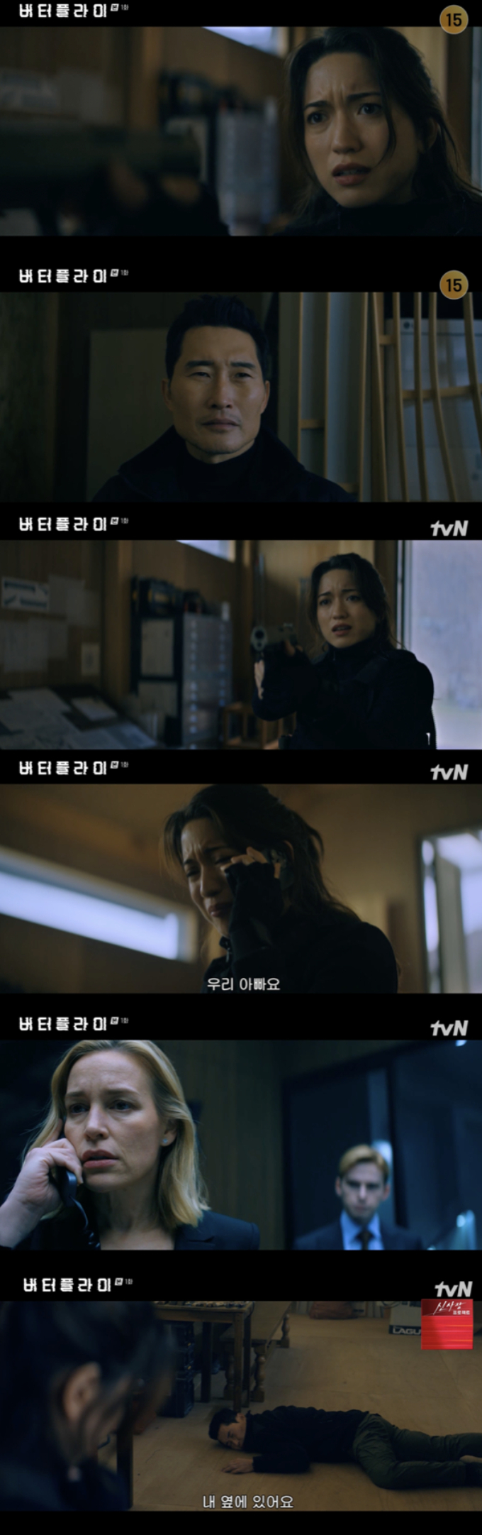 [스타뉴스|정은채기자]/사진='버터플라이'방송화면캡쳐배우김태희가tvN에편성된새드라마'버터플라이'첫방송에서남편에게애절한복귀를호소했다.22일첫방송된tvN드라마'버터플라이'1화에서는김은주(김태희분)가남편데이비드정(대니얼대킴분)에게돌아와달라고간절히부탁하는장면이그려졌다.극중데이비드정은전직미국정보요원으로,딸을지키기위해자신의죽음을위장한채한국에서새로운삶을살아가고있었다.하지만딸리베카(레이나하디스티분)가국제조직'캐디스'의작전에휘말리리며다시소용돌이에휘말리게됐다.데이비드정은딸을구하기위해캐디스작전에잠입했고,그과정에서한국에있는아내김은주와재회할기회를잡았다.그는전화로"딸을봤다.그런데다가가기도전에도망쳤다"라며애끓는속내를털어놓았다.이에김은주는짧은침묵끝에"속상하겠다.그래도이젠돌아와야지"라며남편에게돌아올것을촉구했다.그러나데이비드정은끝내딸을포기할수없다는의지를보였고,이에김은주는"캐디스는당신을보면죽일거고,우리를죽일거야.구할수없는애면어쩌려고?"라고두려운마음을숨기지못하며경고했다정은채기자[email protected]©스타뉴스&starnewskorea.com,무단전재및재배포금지